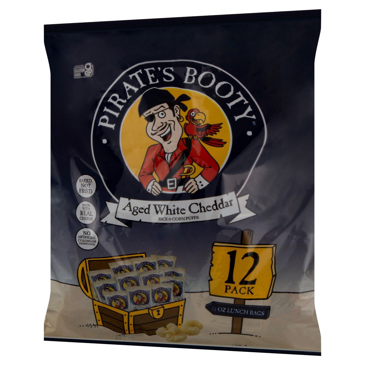 Pirate's Booty Baked Aged White Cheddar Rice and Corn Puffs - 12 ct; 0.5 oz