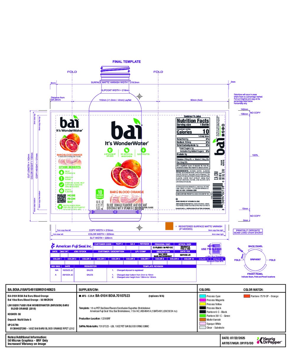 Bai Antioxidant Infused Water Beverage, Barú Blood Orange, 18 fl oz