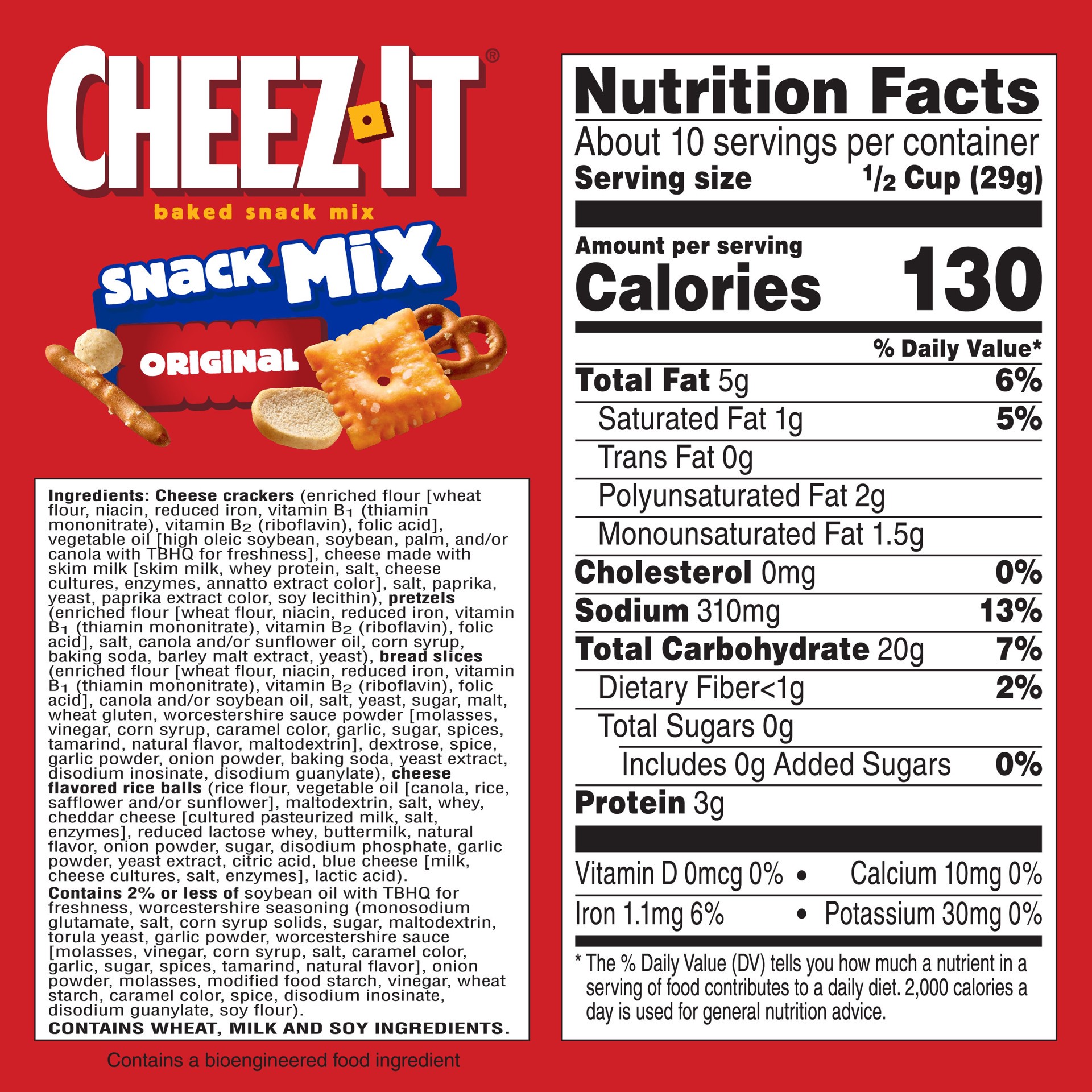 Snack satisfaction starts with a delicious handful of Cheez-It Classic snack mix. Featuring a flavor-packed combination of cheesy Cheez-It crackers, salty pretzels, mini toasted bread slices, and crun…