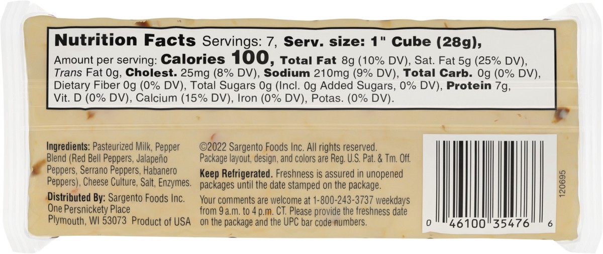 Bring a little heat to every occasion. Sargento Block FiestaTM Pepper Jack blends the heat of jalapeños, serrano, habanero and red peppers with the creamy, mellow sweetness of Monterey Jack Natural ch…