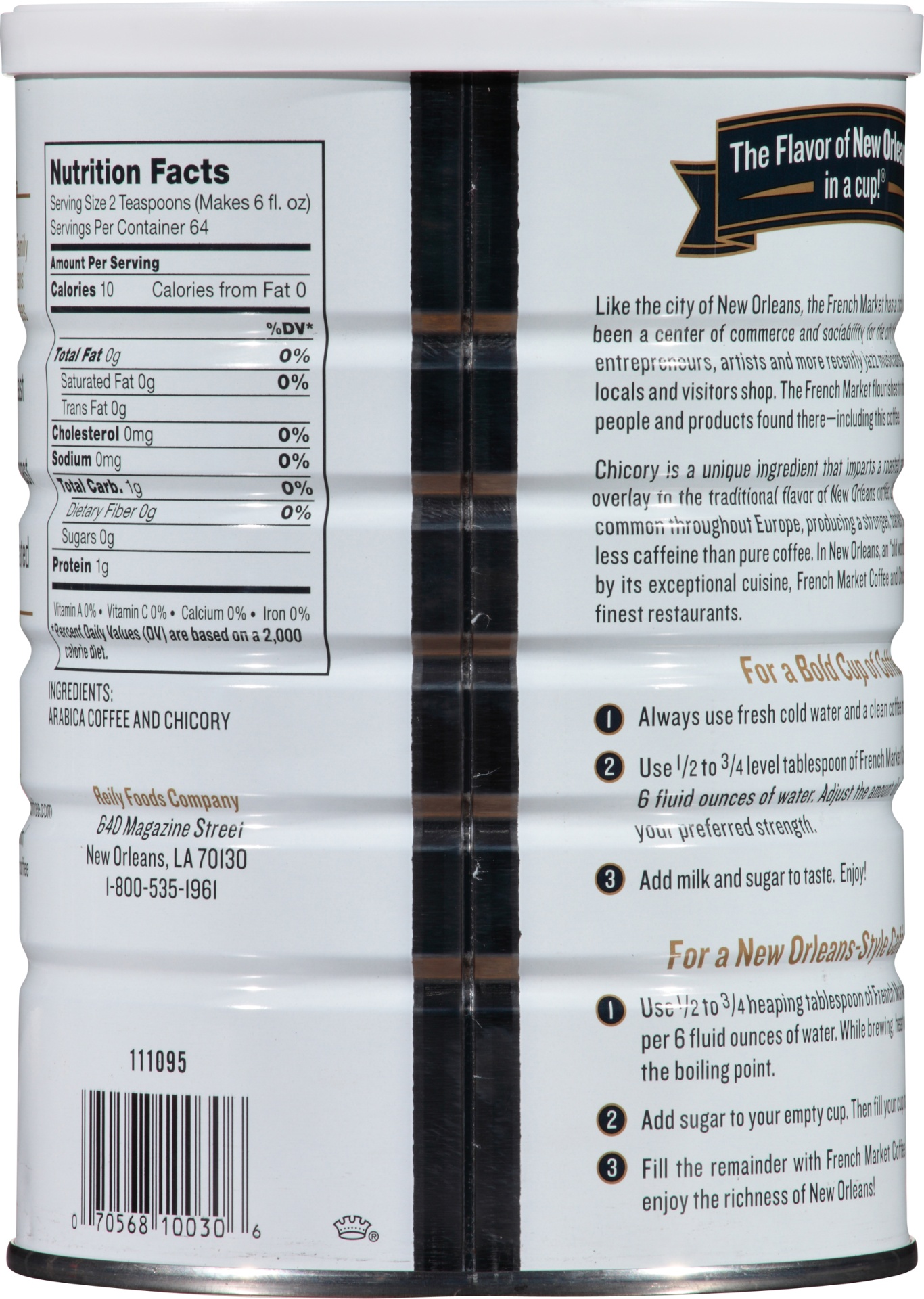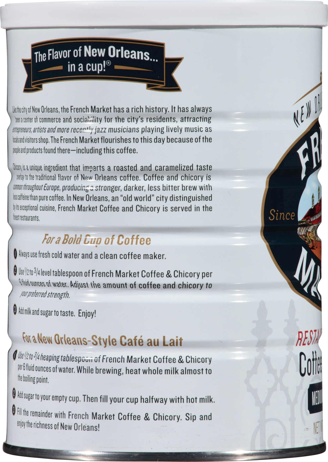 French Market Coffee Restaurant Blend Medium Dark Coffee and Chicory - 12 oz