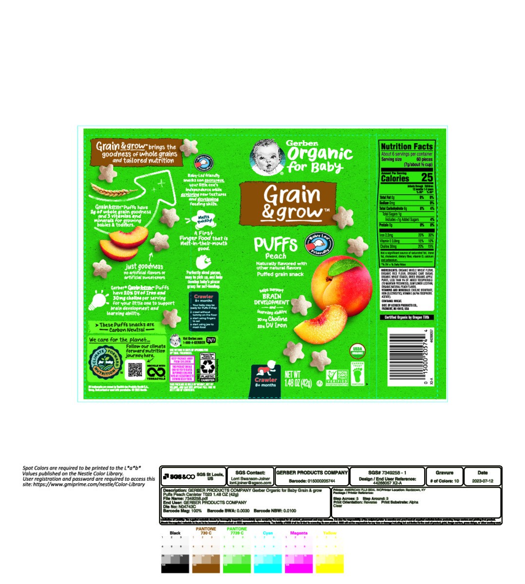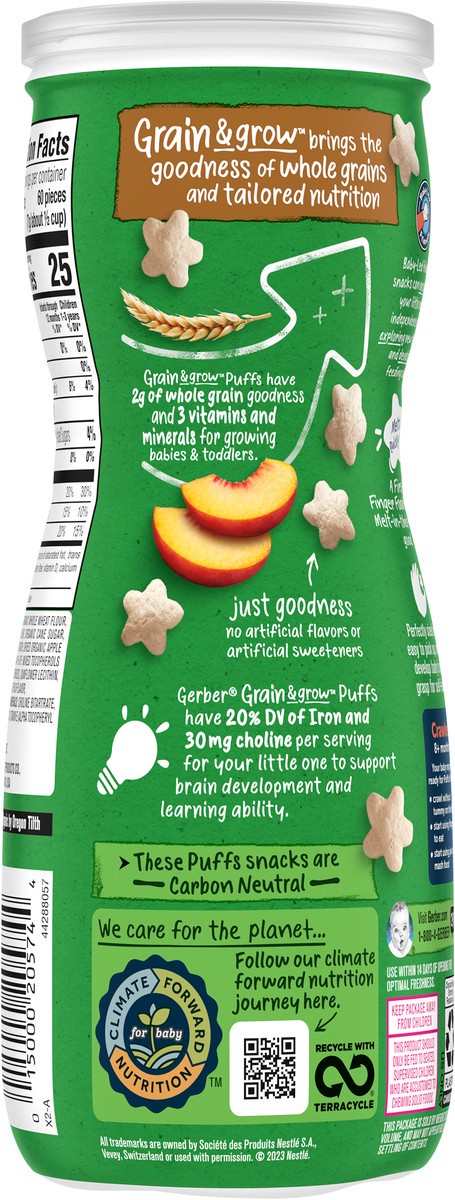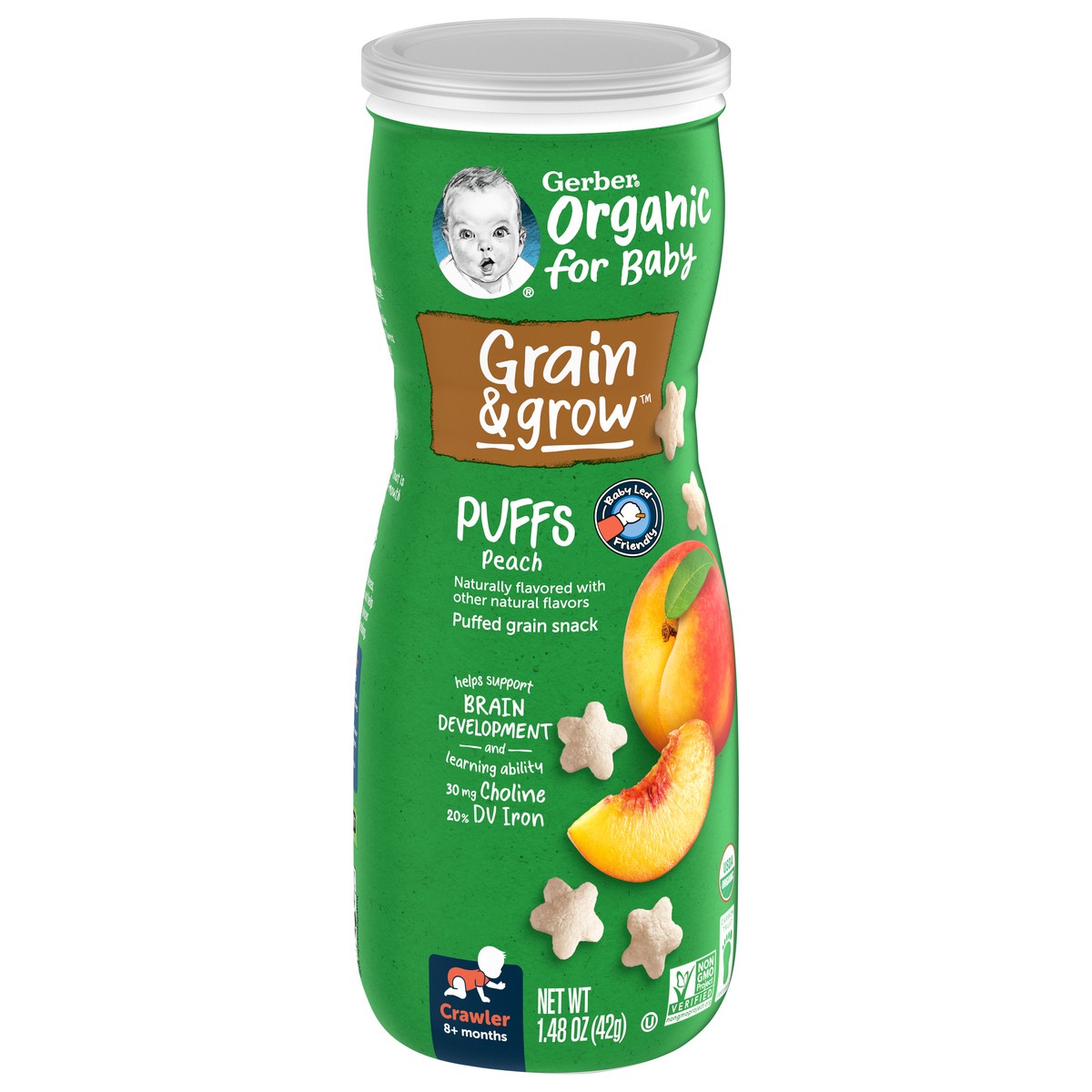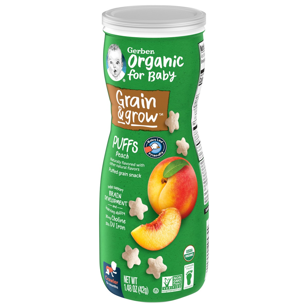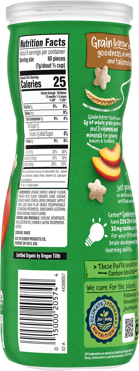 Gerber Organic for Baby Crawler (8+ Months) Grain & Grow Puffs Peach Baby Food 1.48 oz
