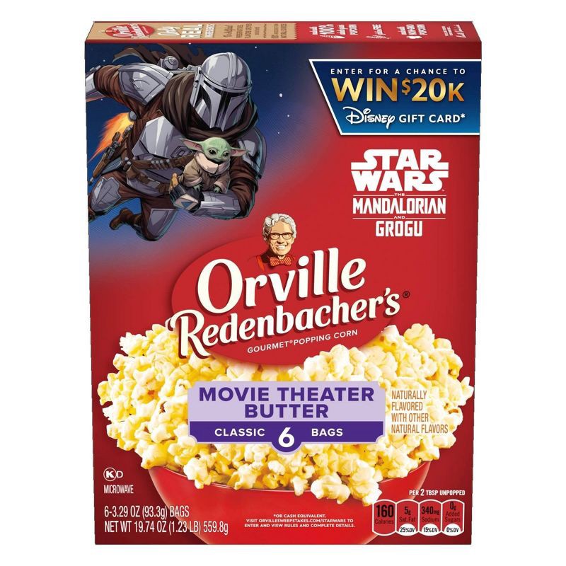 - 6 count box of Orville Redenbacher's Movie Theater Butter Microwave Popcorn, 3.29 oz bags