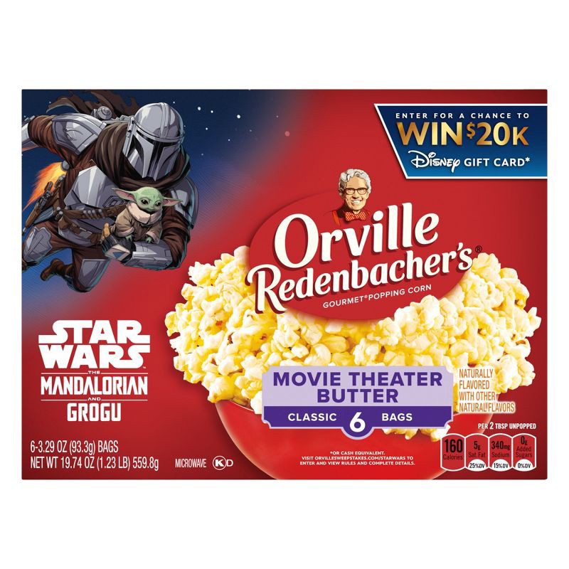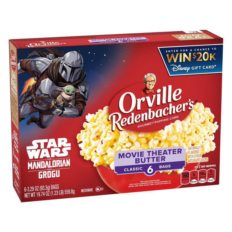 - 6 count box of Orville Redenbacher's Movie Theater Butter Microwave Popcorn, 3.29 oz bags