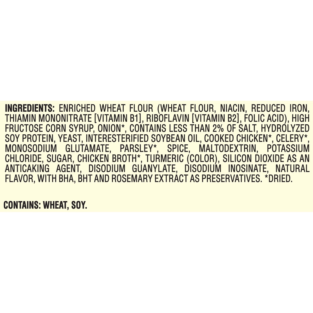 ENRICHED WHEAT FLOUR (WHEAT FLOUR, NIACIN, REDUCED IRON, THIAMIN MONONITRATE [VITAMIN B1], RIBOFLAVIN [VITAMIN B2], FOLIC ACID), HIGH FRUCTOSE CORN SYRUP, ONION*, CONTAINS LESS THAN 2% OF SALT, HYDROL…