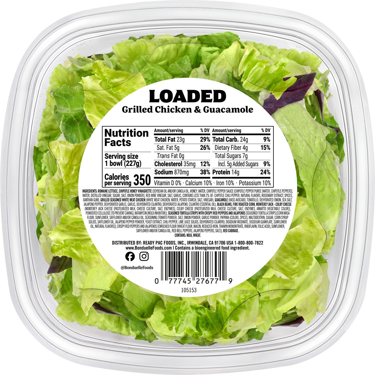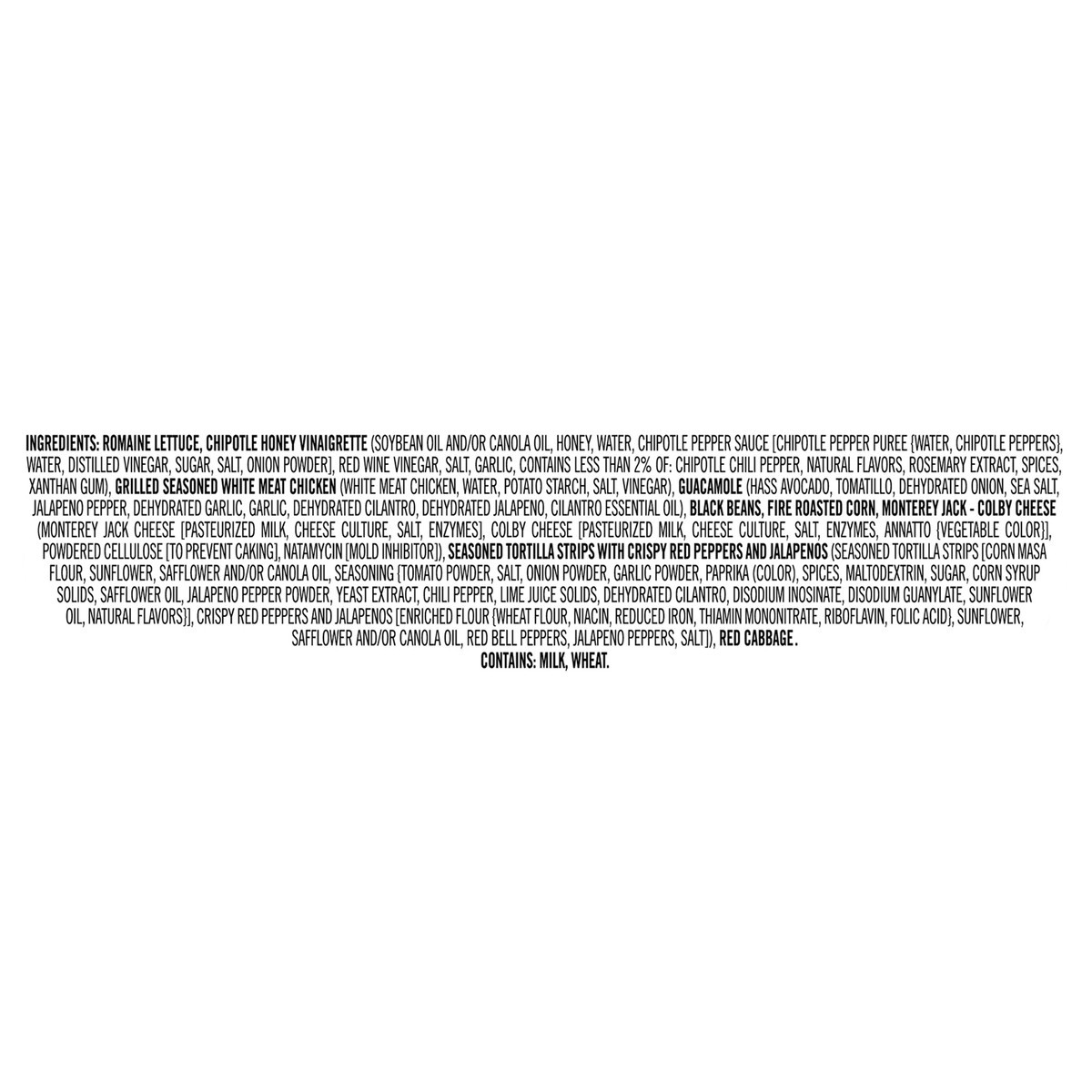 Romaine Lettuce, Chipotle Honey Vinaigrette (Soybean Oil and/or Canola Oil, Honey, Water, Chipotle Pepper Sauce [Chipotle Pepper Puree (Water, Chipotle Peppers), Water, Distilled Vinegar, Sugar, Salt,…