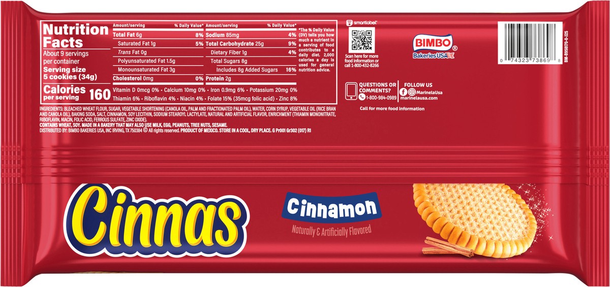 Marinela Cinnas Cinnamon Cookies, 8 packs, 19.05 oz