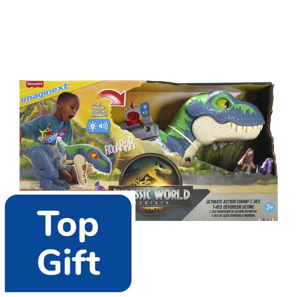 Young Jurassic World fans will roar along with the Imaginext Ultimate Action Chomp T-Rex from Fisher-Price (JGR40) that features light, sound, motion and action! Standing 18 inches tall and 30 inches …