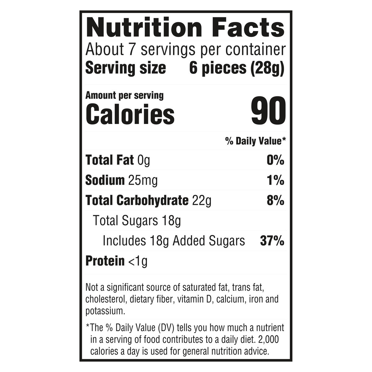 Corn Syrup, Sugar, Water, Dextrose, Gelatin, Contains 2% or Less of: Citric Acid, Modified Food Starch, Malic Acid (DL-Malic Acid), Pectin, Sodium Citrate, Natural and Artificial Flavors, Gum Arabic, …