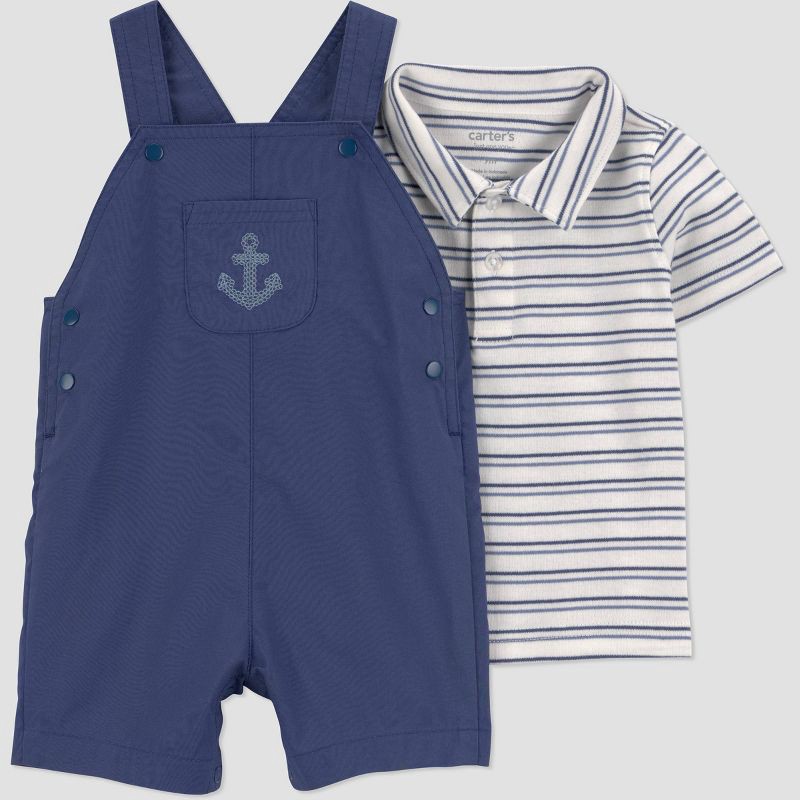 Carter's Just One You® Baby Boys' 2pc Striped Anchor Overalls Set - Navy Blue 6M