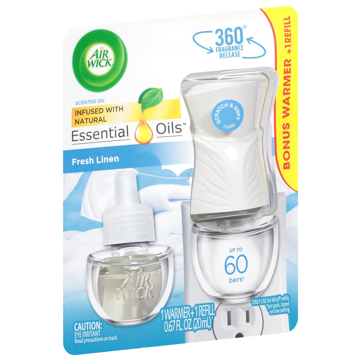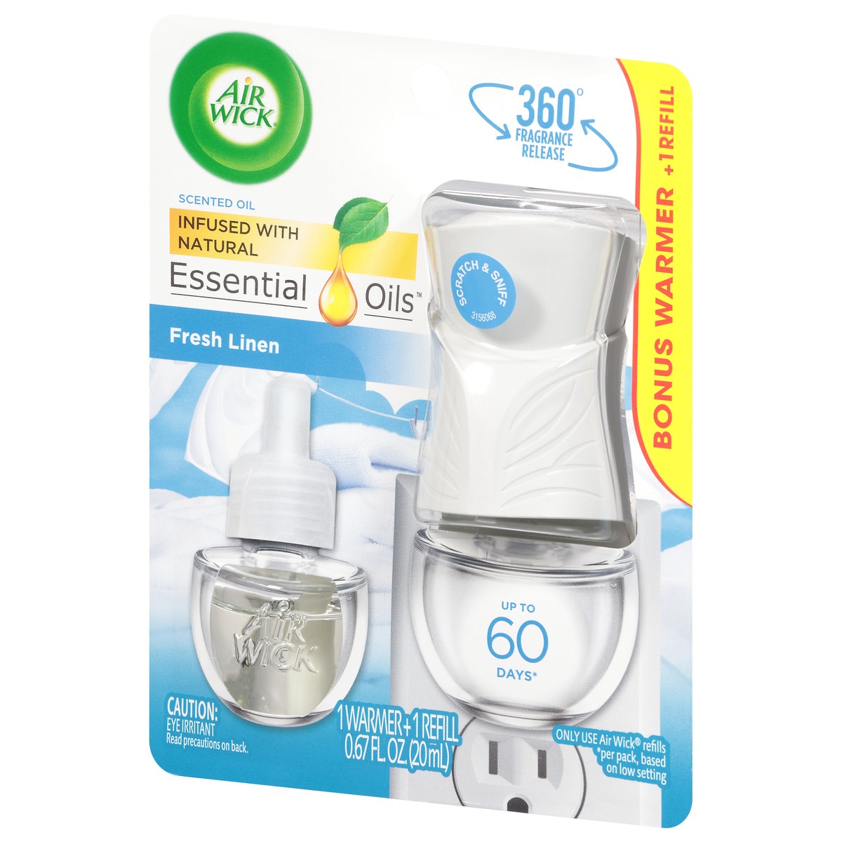 Air Wick Plug in Scented Oil Starter Kit (Warmer + 1 Refill), Fresh Linen, Air Freshener, Essential Oils