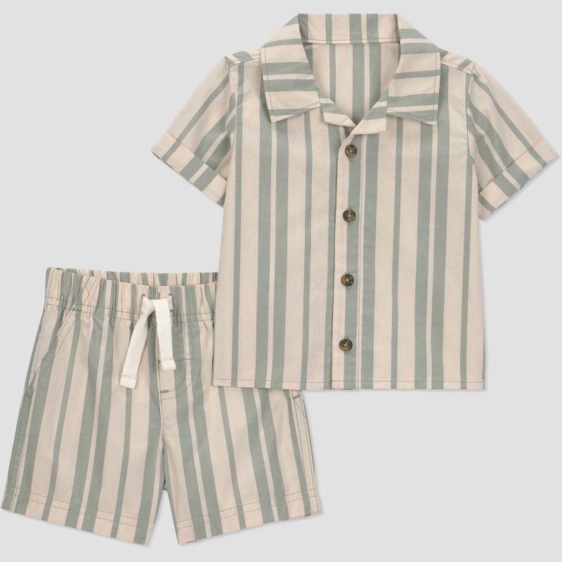 Carter's Just One You® Baby Boys' 2pc Striped Button-Down Shirt and Shorts Set - Cream/Green 3M