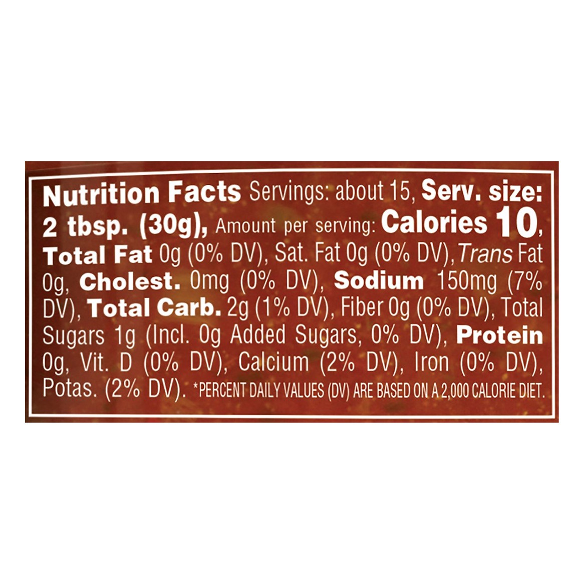 Tomatoes, Tomato Paste, Onions, Water, Jalapeno Peppers, Sugar, Salt, Dehydrated Garlic, Spices, and Natural Flavor.