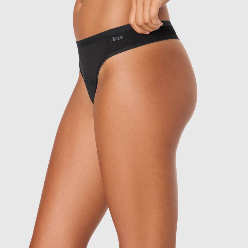 - LIGHT LEAK PROTECTION - Hanes women's light absorbency thong underwear shields against spotting, sweat, and light period leaks with a discreet absorbent liner that keeps you protected while maintaining sleek comfort and confidence.