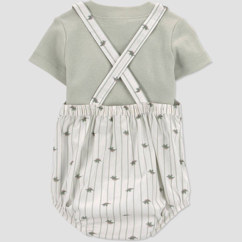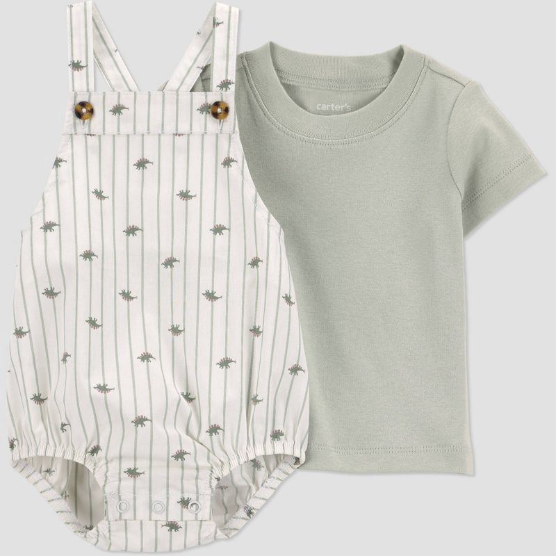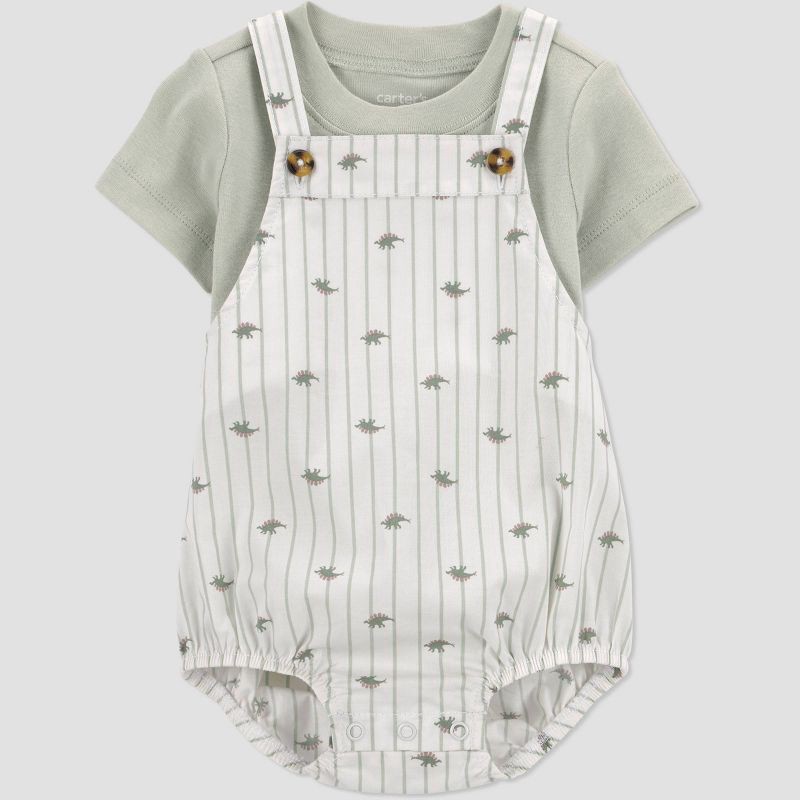 Carter's Just One You® Baby Boys' 2pc Striped Dinosaur Overalls Set - Green 3M