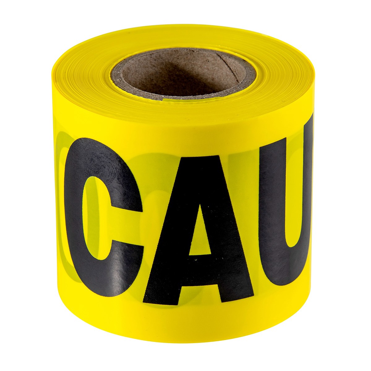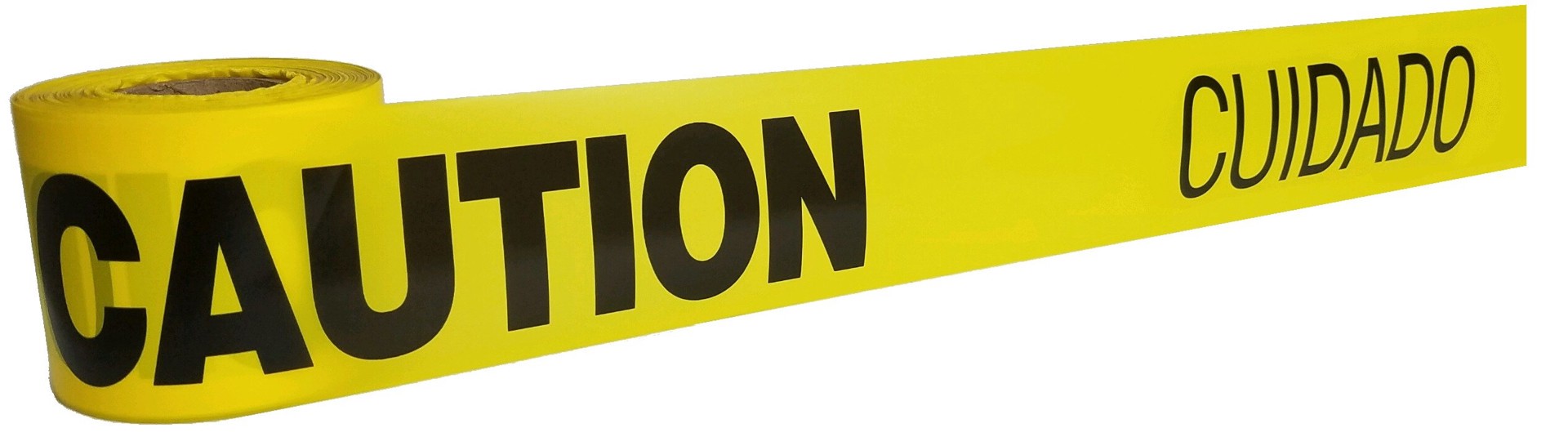 Caution/cuidado repeated in capital, bold letters. Strong, 2 mil thick. 300 Ft long. Yellow for high visibility.
