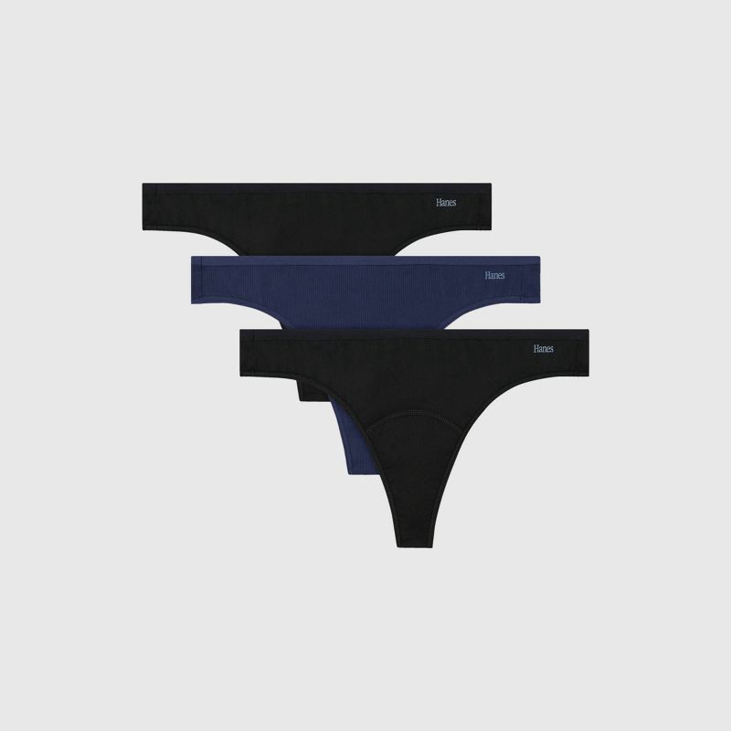 Hanes Women's 3pk Comfort Active Thong Period Underwear - 2XL