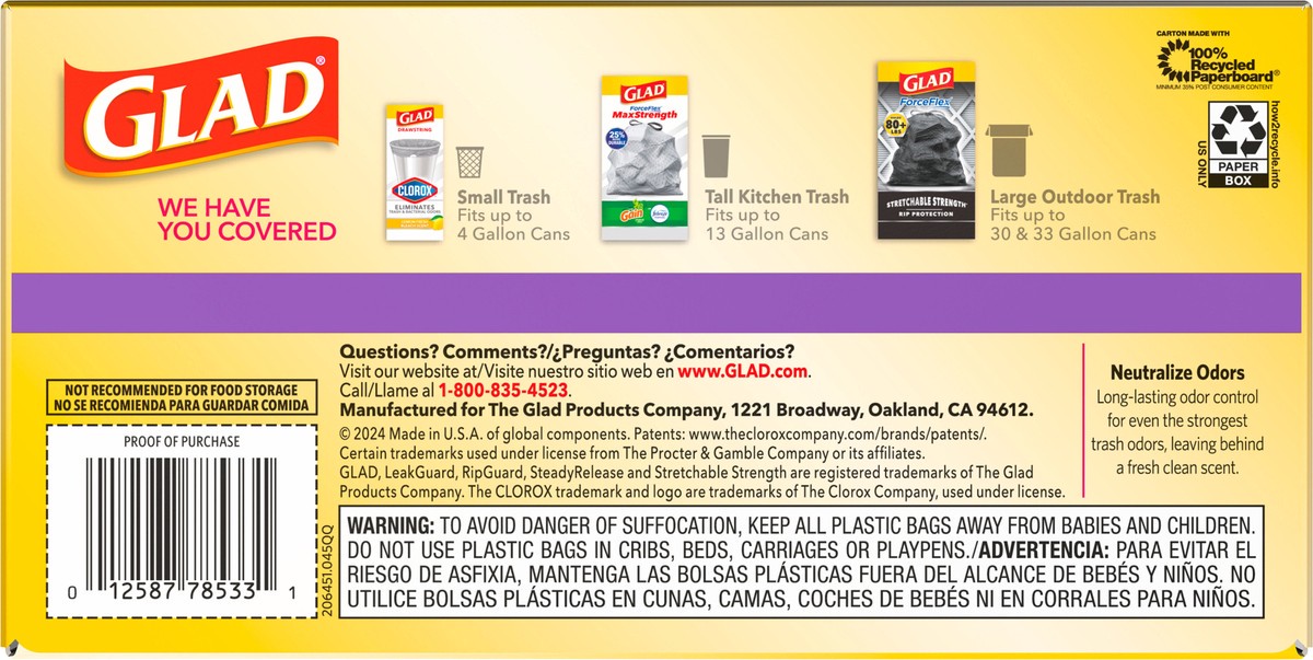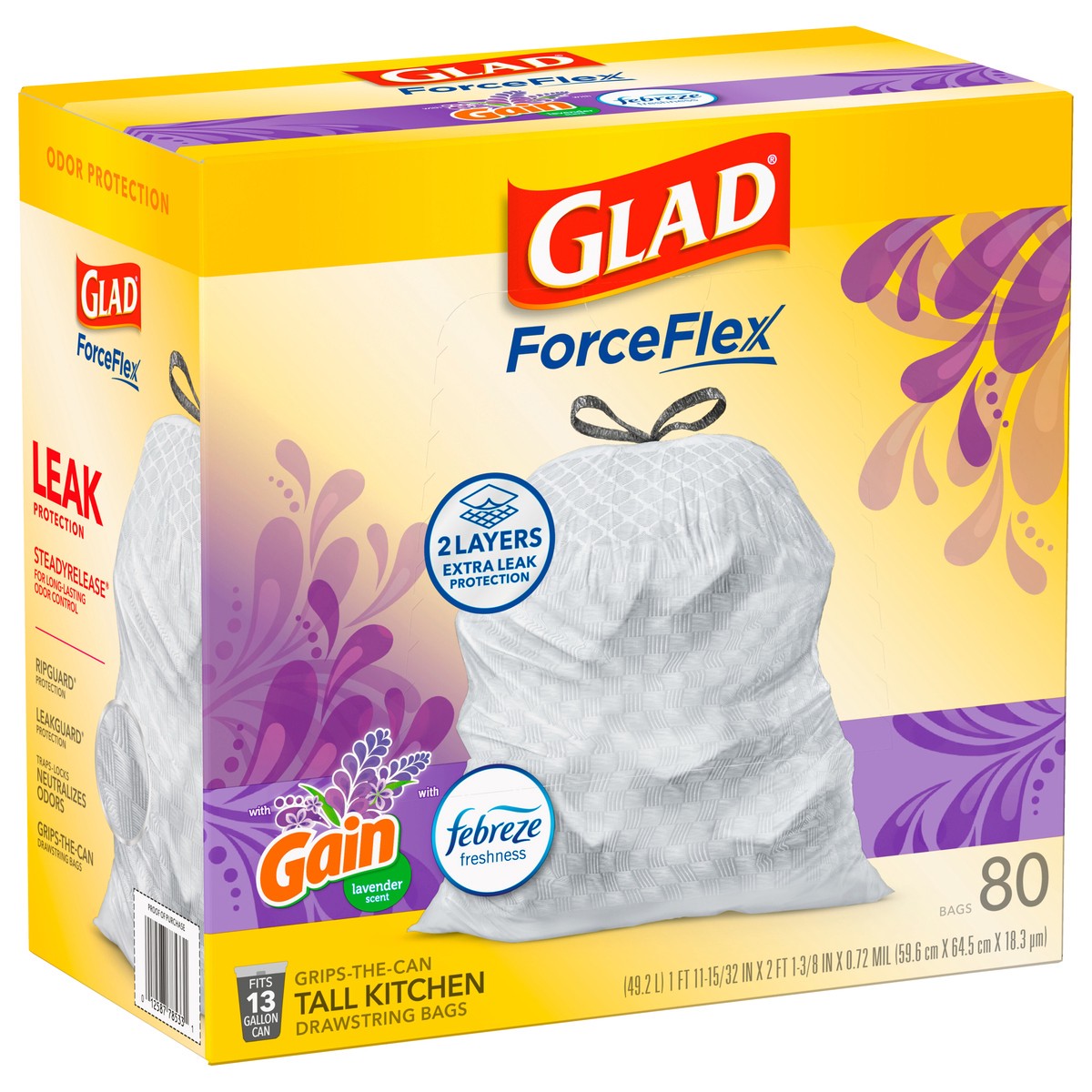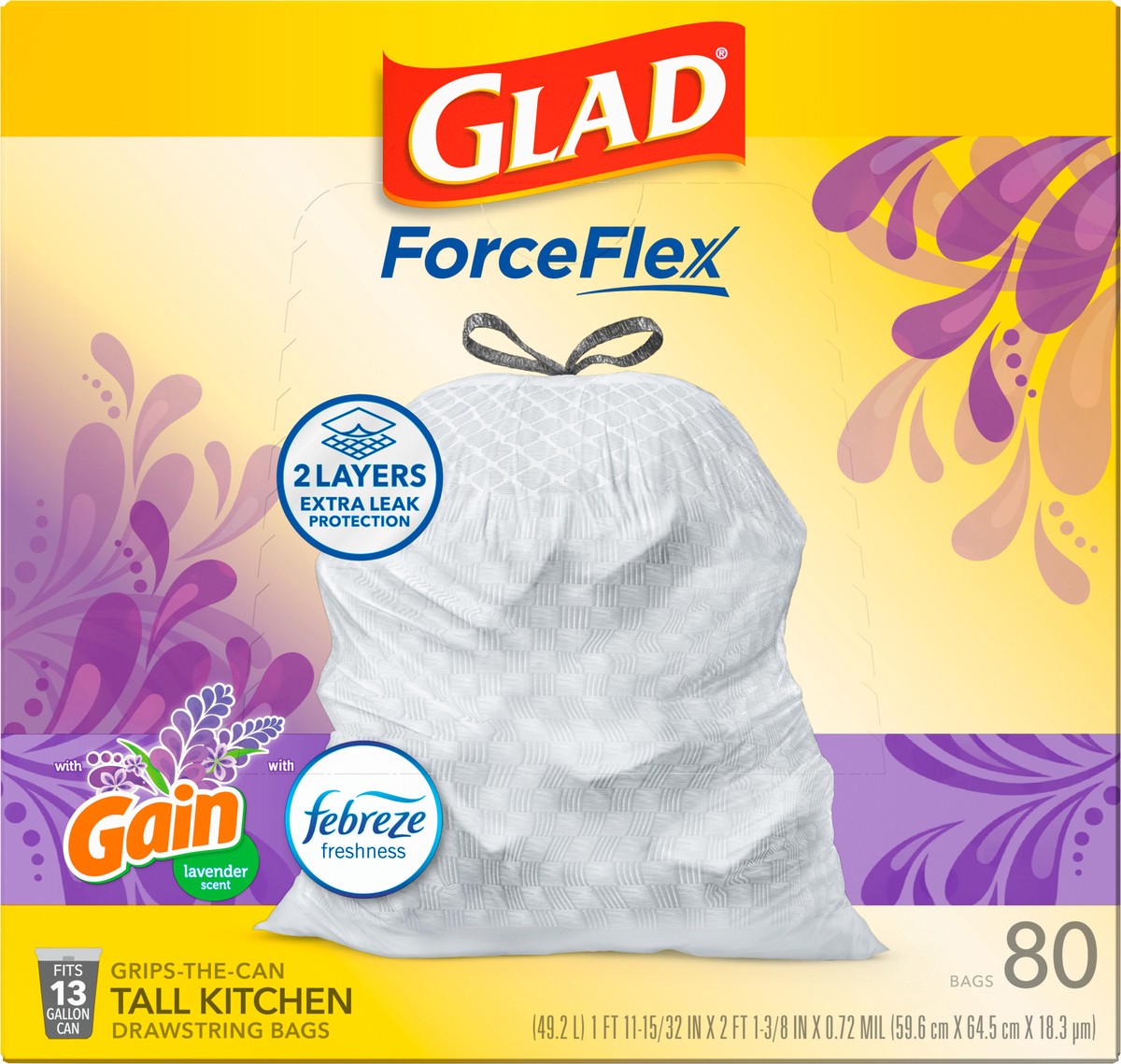 - FORCEFLEX STRENGTH: Glad’s trusted ForceFlex technology allows the bag to stretch and expand over heavy loads with sharp edges