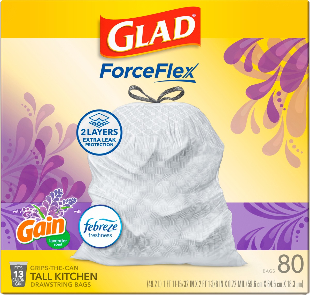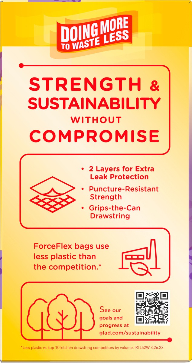 Let the stretchable strength of Glad ForceFlex handle all the messes our busy daily life can throw at it and then some. Glad Tall Kitchen Drawstring Trash Bags are designed with ForceFlex technology t…
