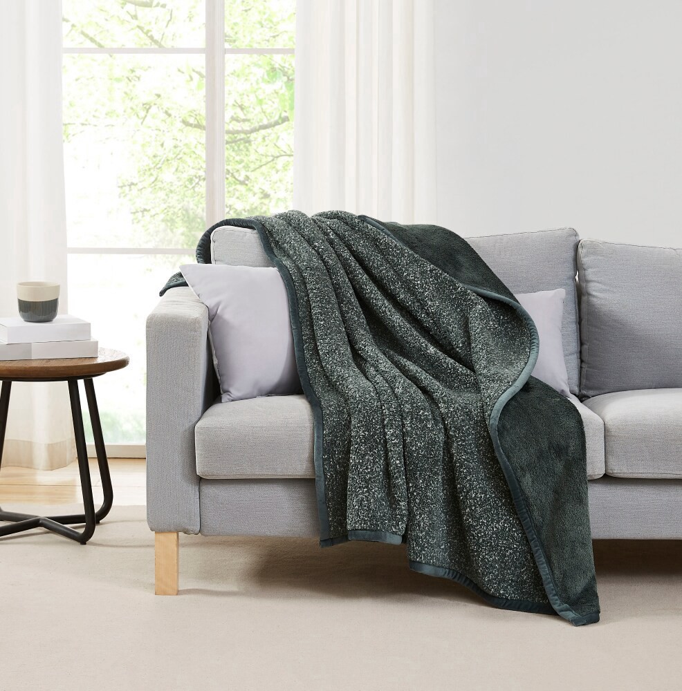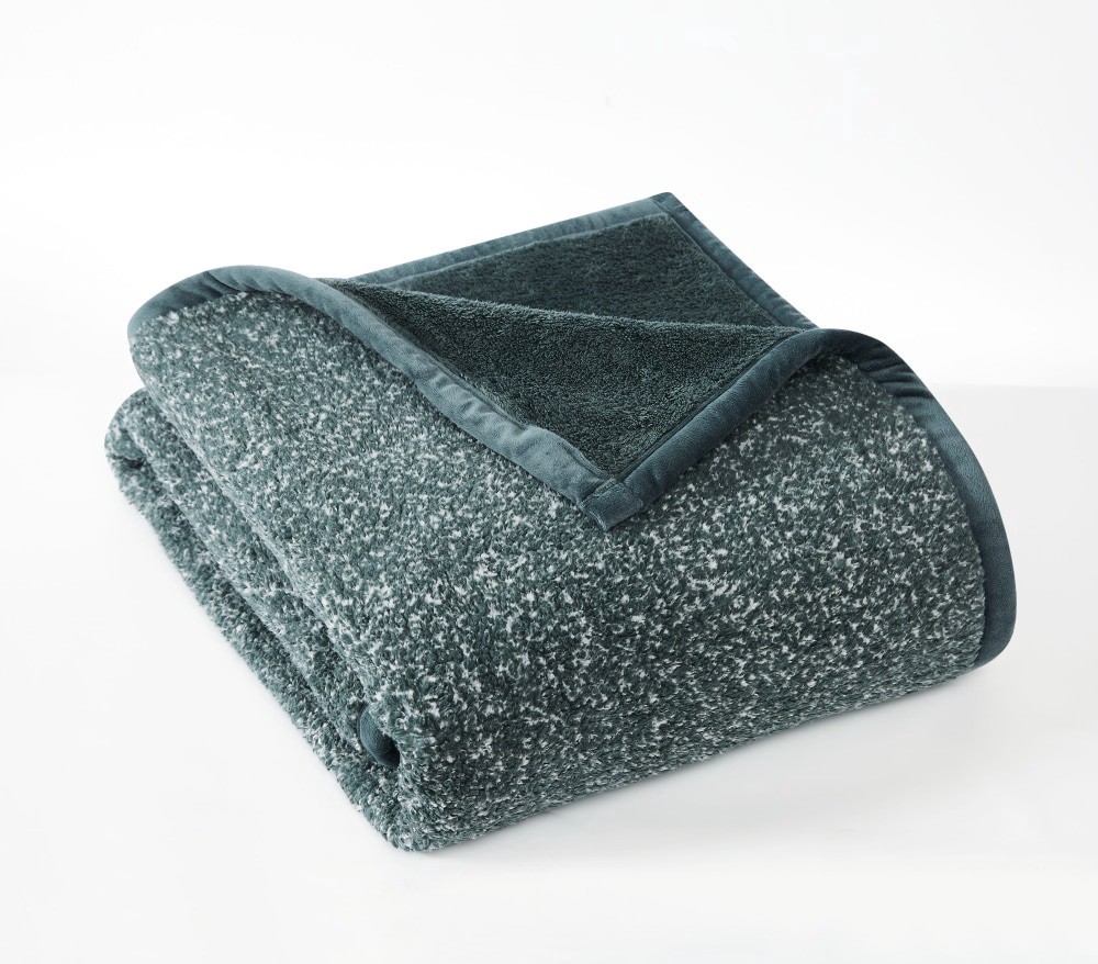 Enjoy this fashionable reversible throw. Heavyweight Mélange Sherpa face reverse to a high pile plush fabric