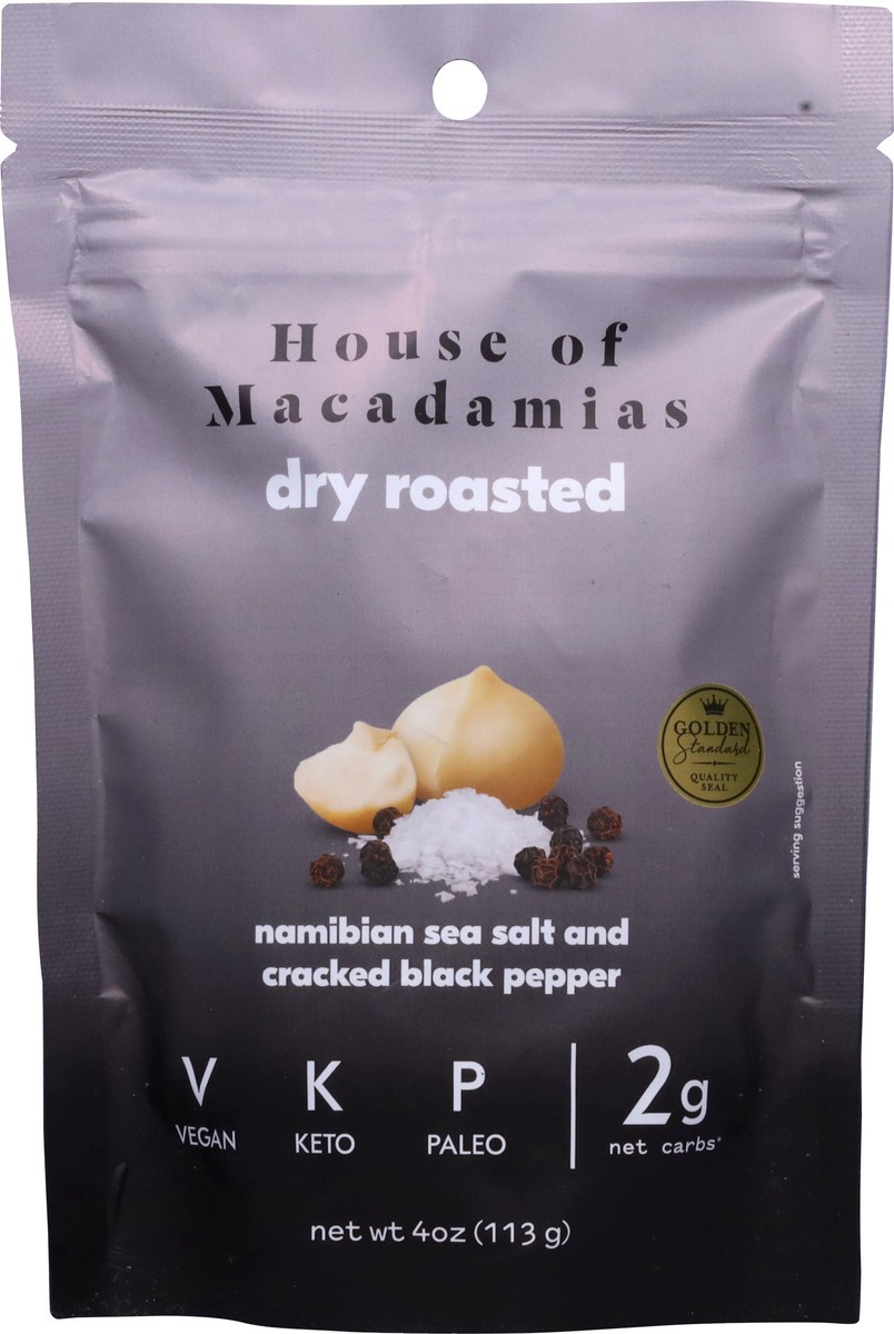 House of Macadamias Dry Roasted Namibian Sea Salt Cracked Black Pepper Macadamias 4 oz