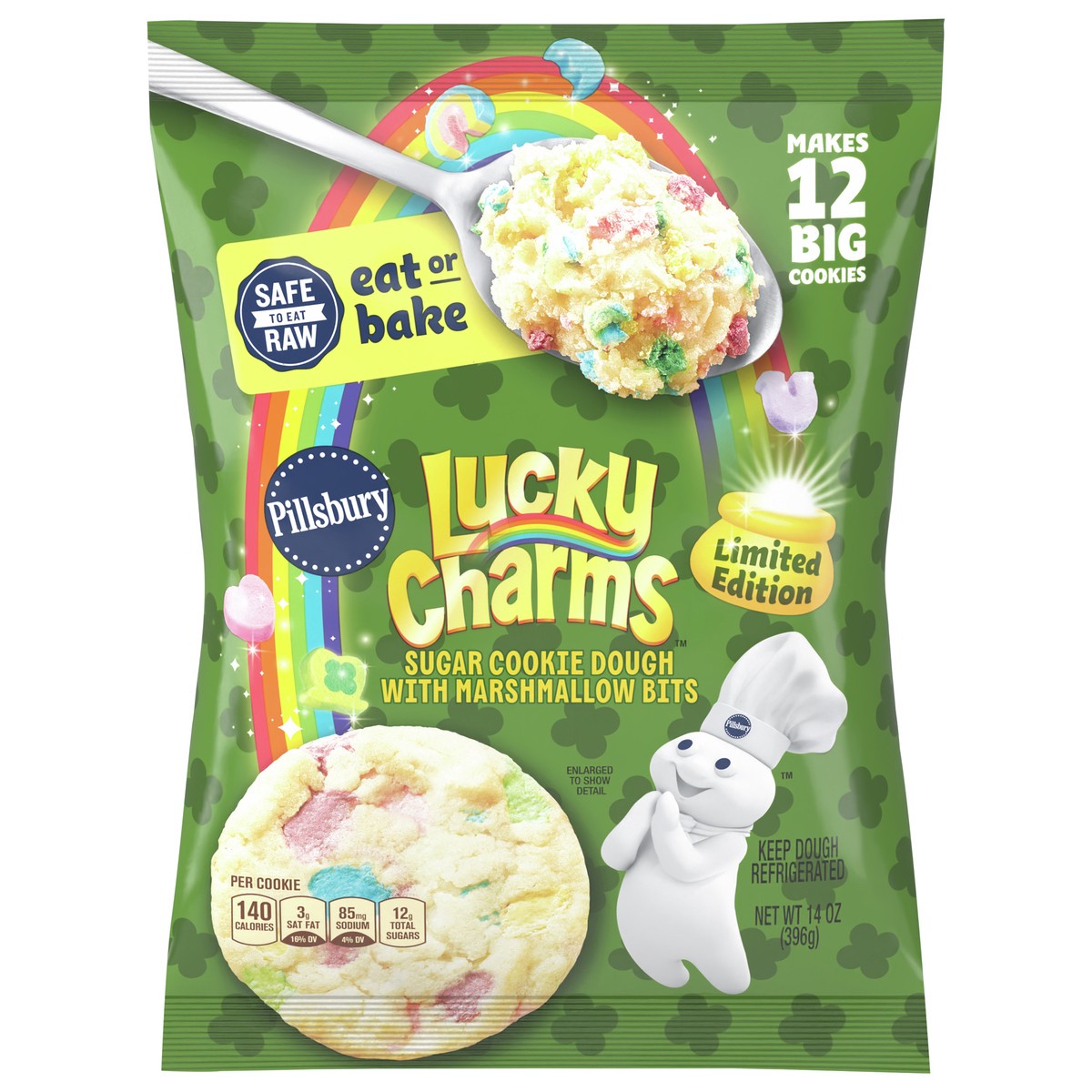 Pillsbury Ready to Bake! Cookie Dough, Limited Edition Lucky Charms Sugar Cookie Dough With Marshmallow Bits, 14 oz