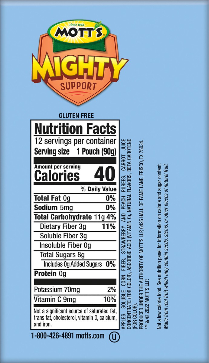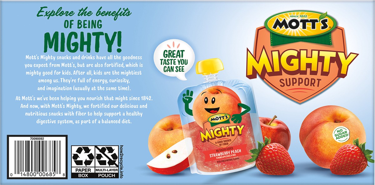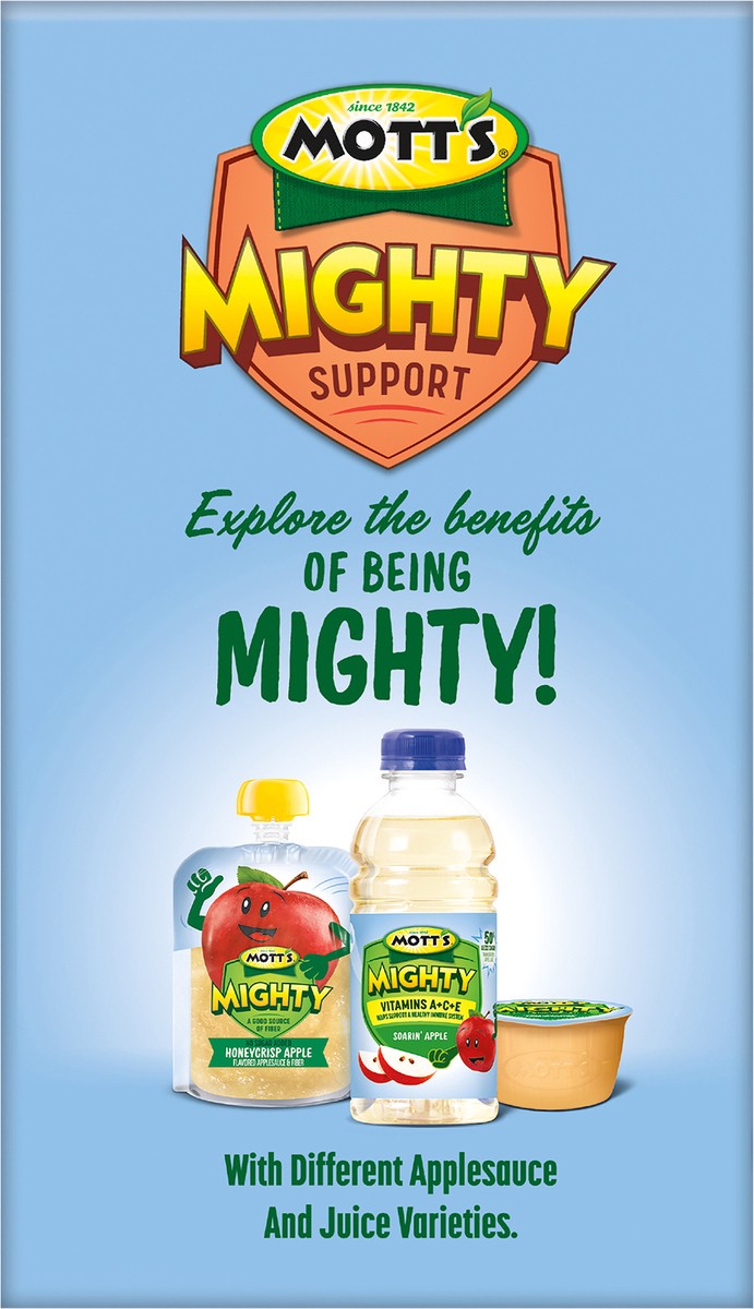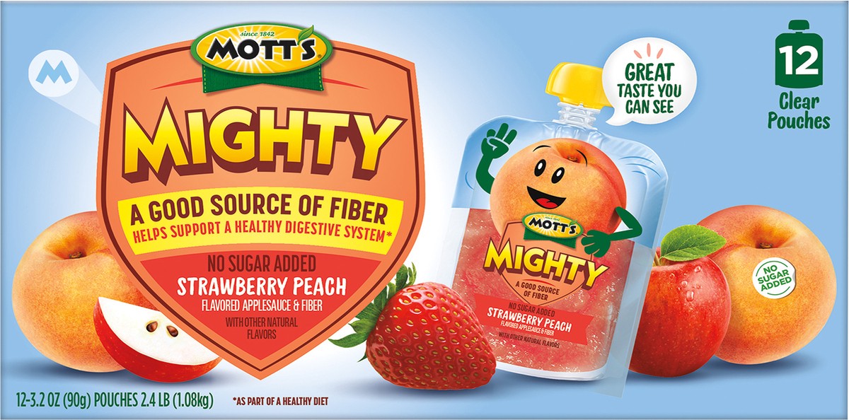Since 1842. Helps support a healthy digestive system (as part of a healthy diet). Great taste you can see. 12 Clear pouches. Explore the benefits of being mighty! Mott''s mighty snacks and drinks have…