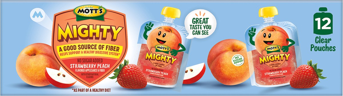 Mott's Mighty Strawberry Peach Applesauce Clear Pouches, 12 Pack 3.2 oz