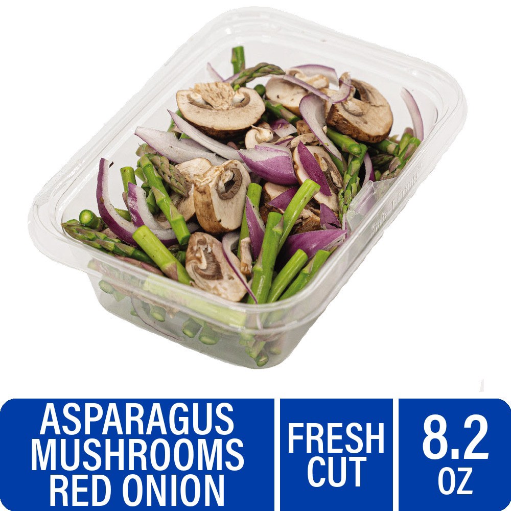 Fresh Cut Asparagus Mushrooms and Red Onions Sauté Vegetable Mix makes dinnertime a breeze! Jumpstart your meals with these ready-to-cook veggies. This pre-cut asparagus, mushroom, and red onion trio …