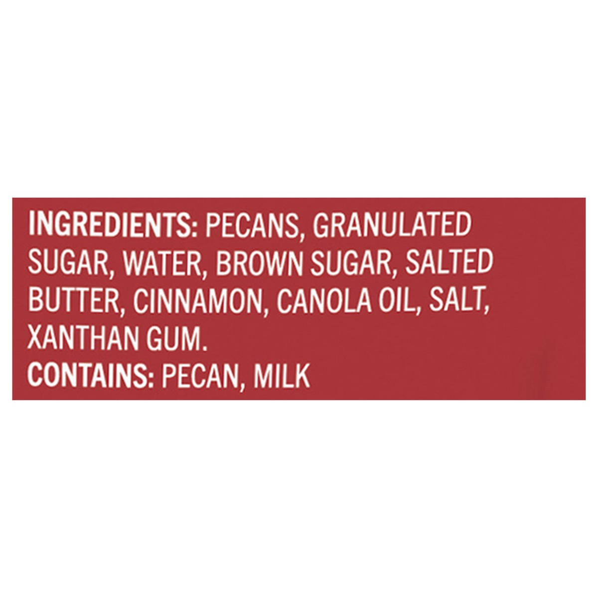 Pecans, Sugar, Brown Sugar (Brown Sugar [Sugar, Cane Syrups]), Cinnamon, Salt, Salted Butter (Pasteurized Cream, Salt), Tact (Maltodextrin, Dextrose, Lecithin, and Xanthan Gum), Soybean Oil, Canola Oi…