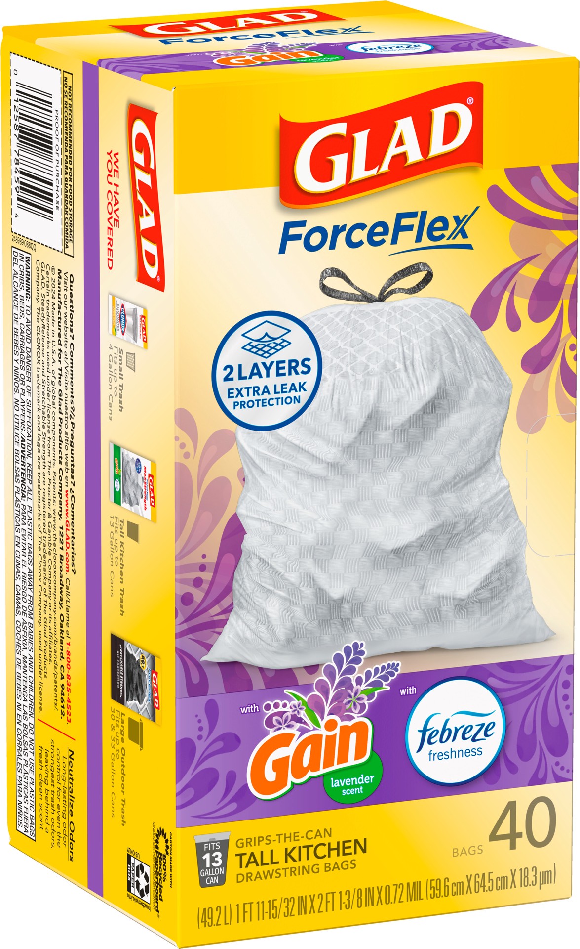 Glad Forceflex Tall Kitchen Trash Bags - Gain Lavender With Febreze 40 Count - 13 Gallon