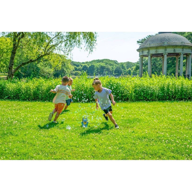 - The Bluey No-Spill Musical Bubble Machine is 2-in-1 play— plays music and blows continuous streams of bubbles.