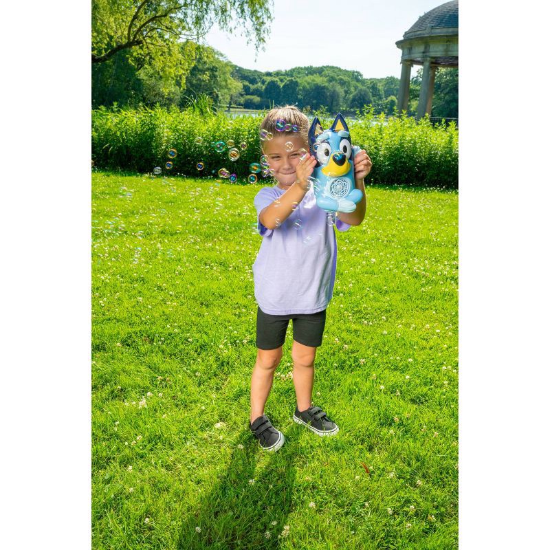 - The Bluey No-Spill Musical Bubble Machine is 2-in-1 play— plays music and blows continuous streams of bubbles.