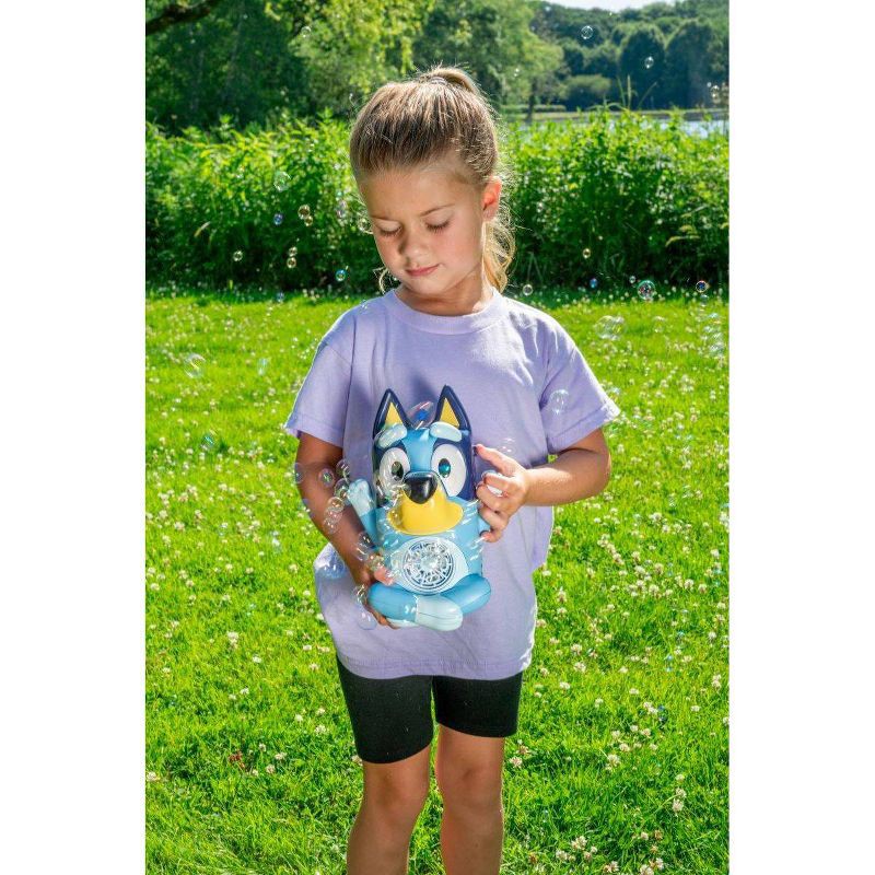 - The Bluey No-Spill Musical Bubble Machine is 2-in-1 play— plays music and blows continuous streams of bubbles.