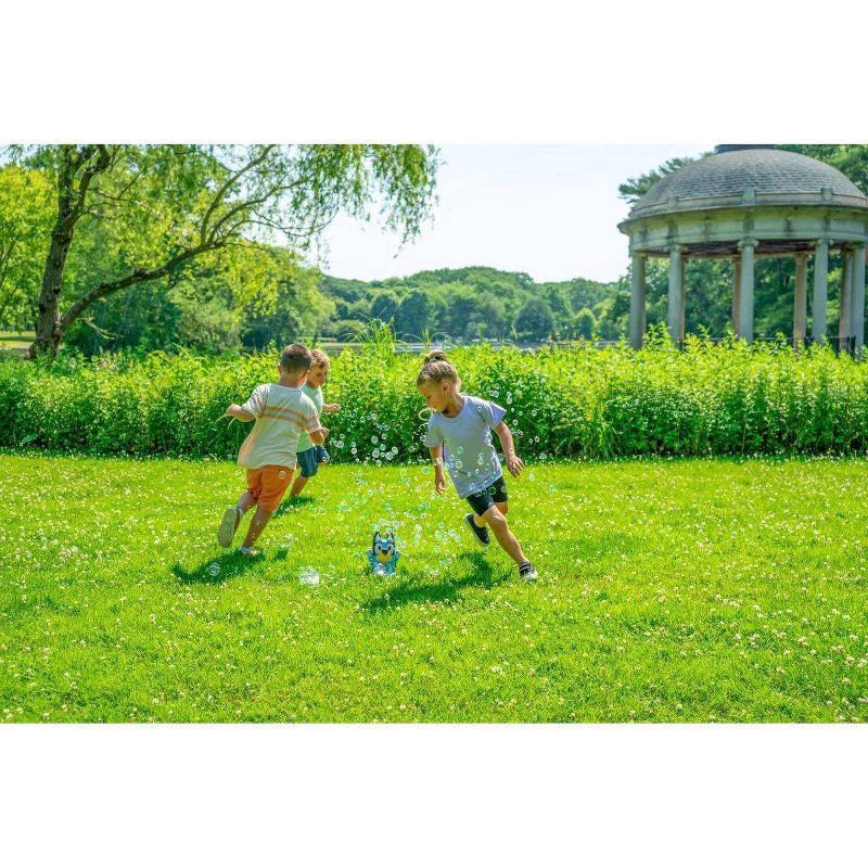 Dance along to the Bluey Dance Mode song as continuous streams of bubbles blow!