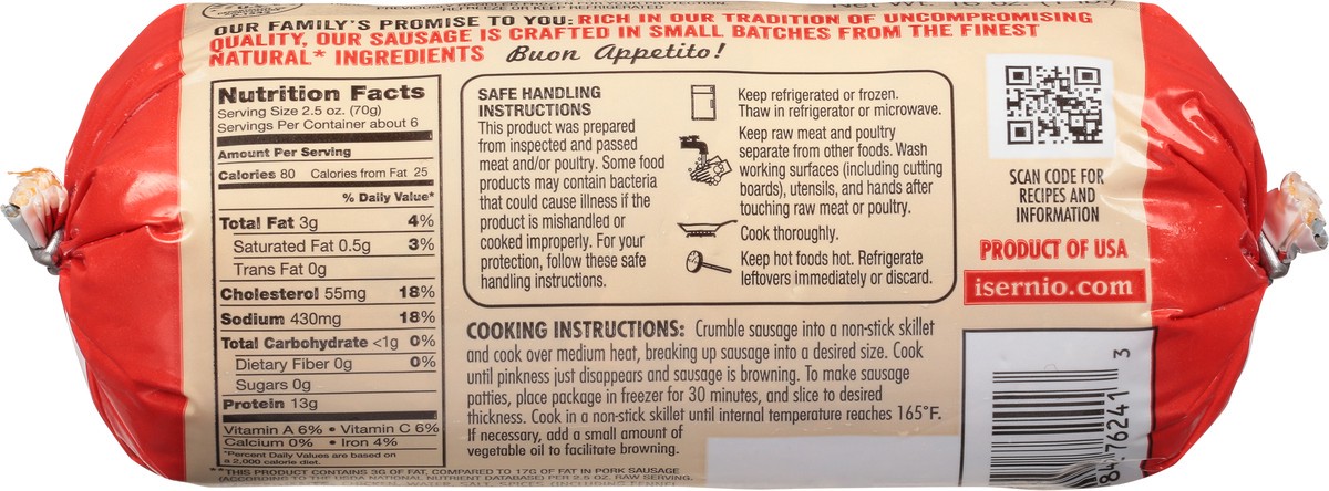 Isernios Chicken Italian Hot Sausage - 16 Oz
