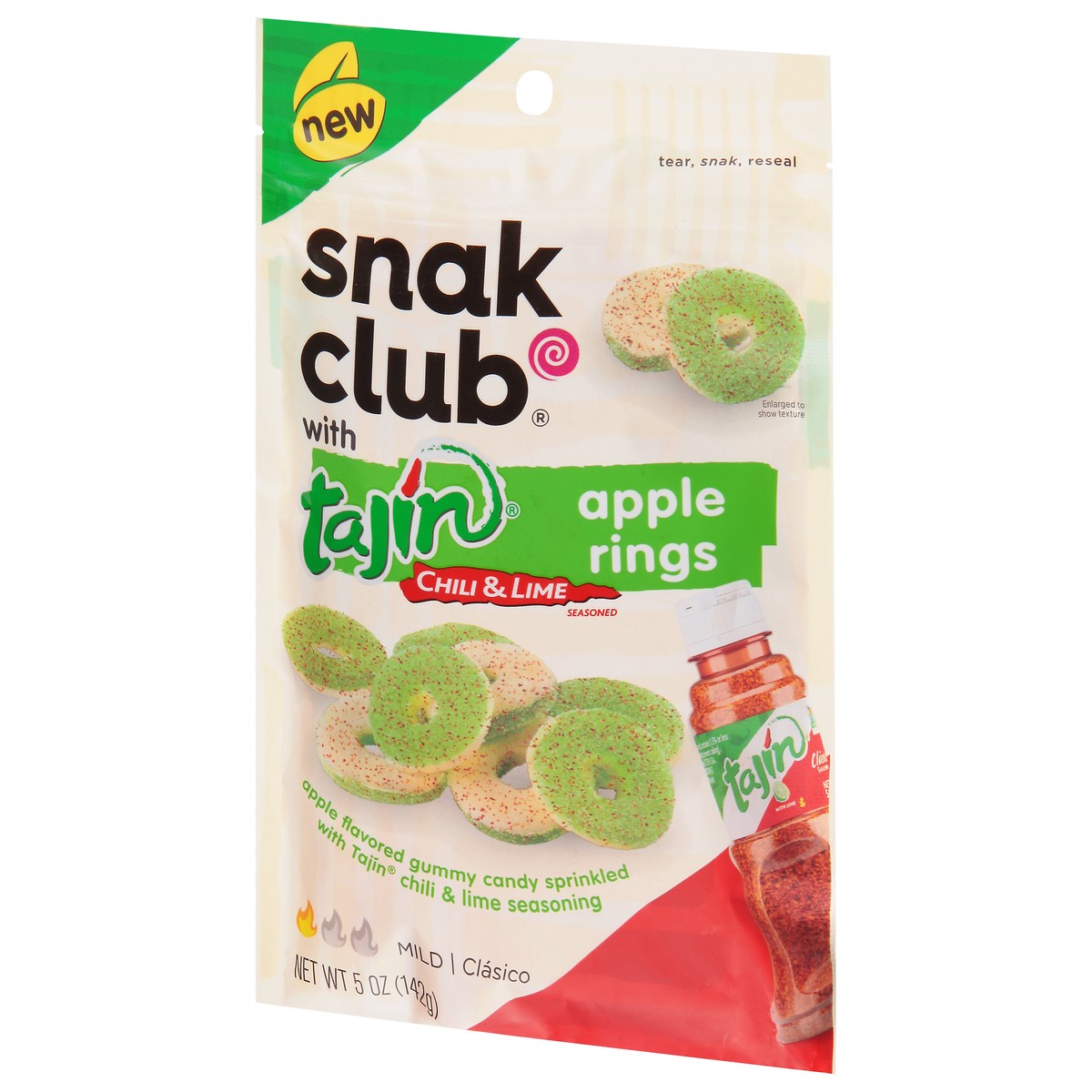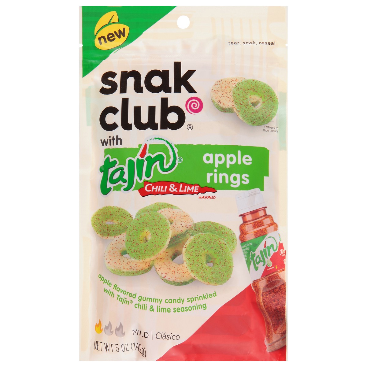 Apple Gummy Rings (Sugar, Glucose Syrup, Modified Corn Starch, Fumaric Acid, Citric Acid, Potassium Citrate, Apple Flavor, Titanium Dioxide, Artificial Colors [Yellow 5, Blue 1, Red 40]), Tajin Clasic…