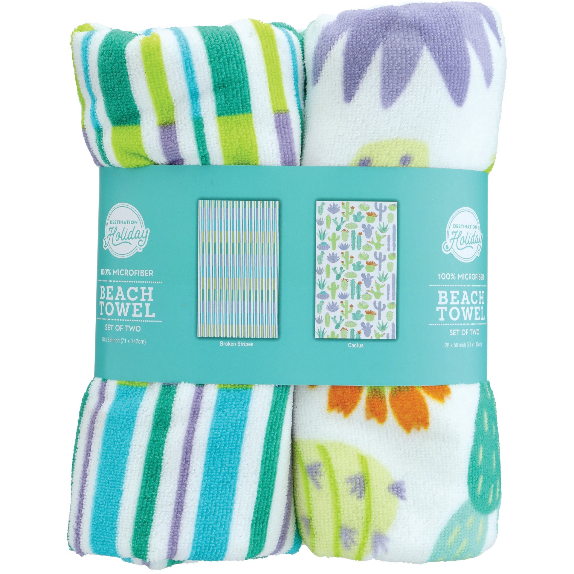 Destination Holiday Microfiber Summer Beach Towel Set - Broken Stripes & Cactus, 2 pk