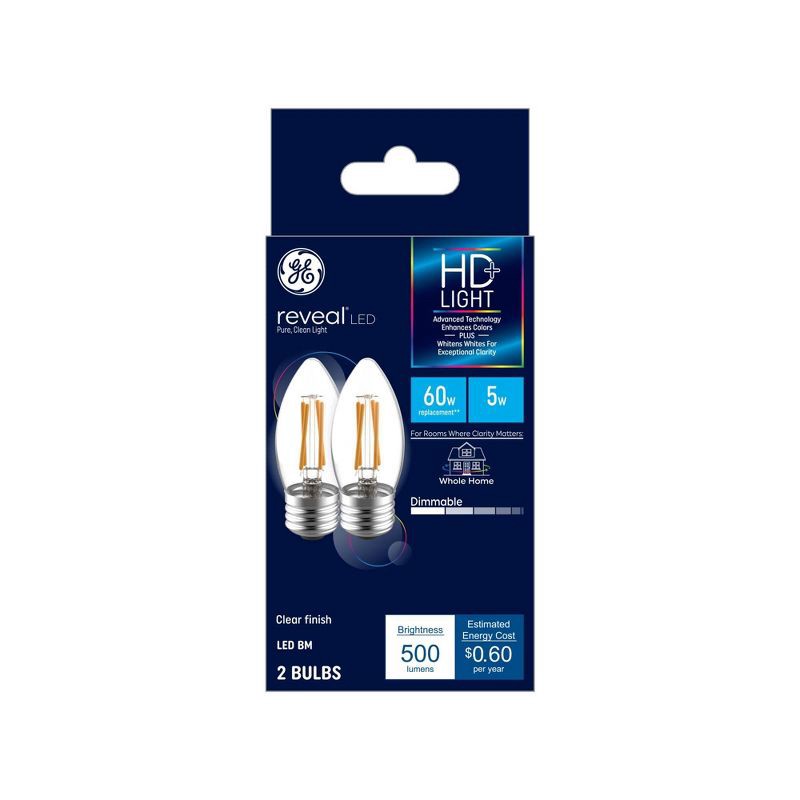 GE Household Lighting GE 2pk 60W Reveal HD+ LED BM Decorative Light Bulbs