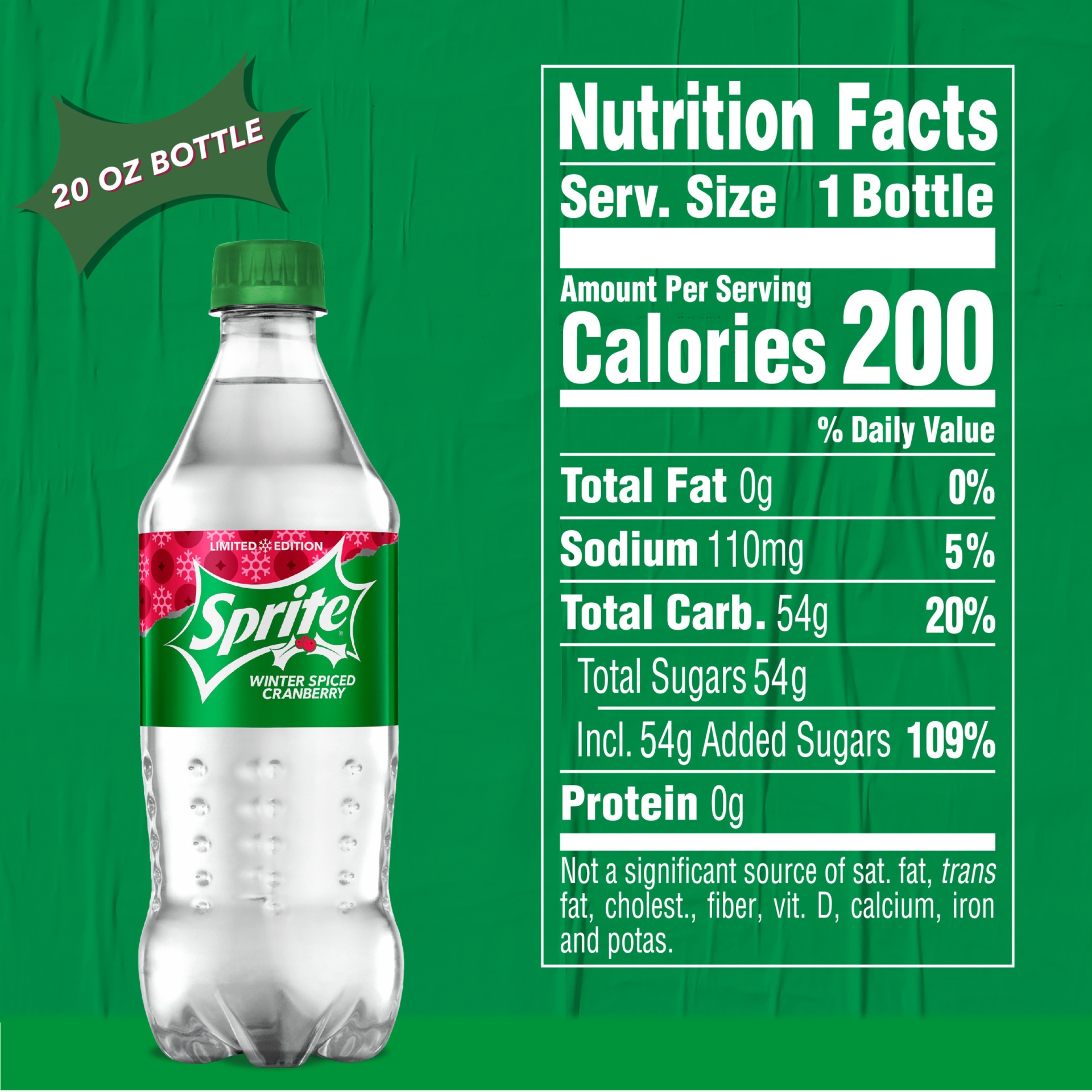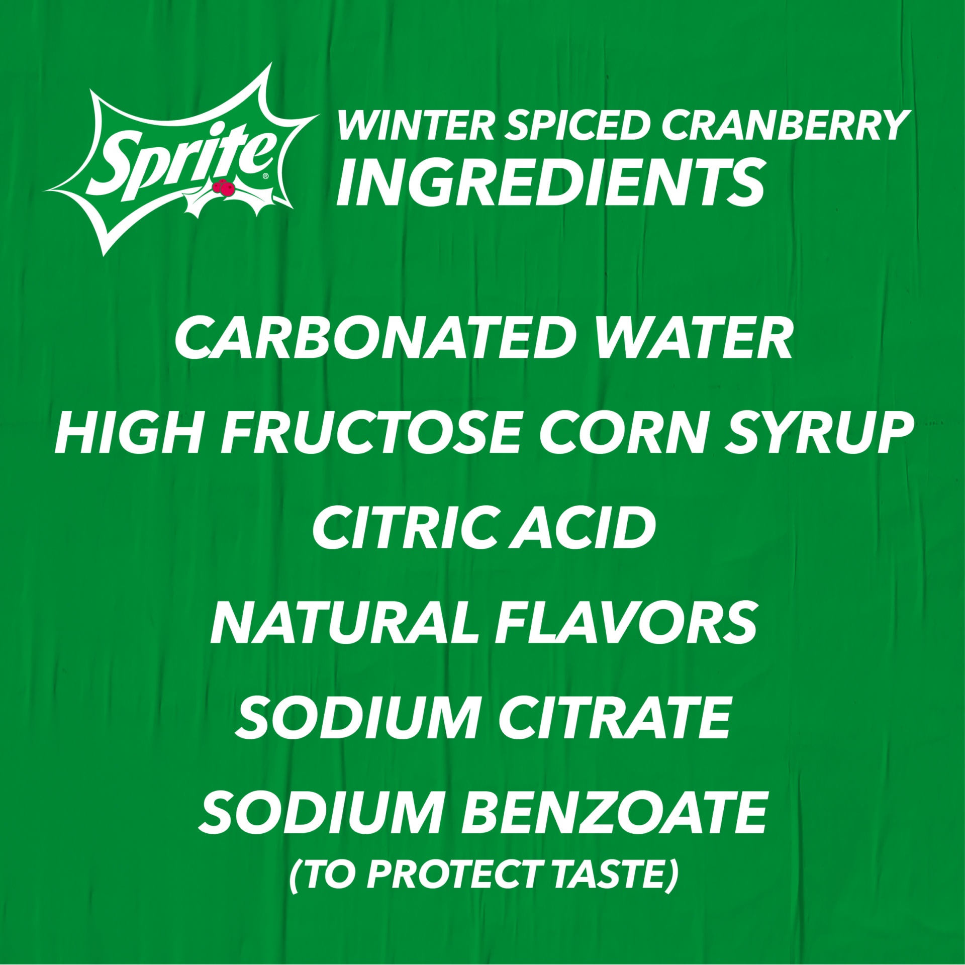 - With a twistCombined with spices and cranberry flavors for a unique taste combinationCaffeine-free20 FL OZ per bottleA blend of spices and tangy cranberry flavors combined with Sprite’s lemon-lime flavor