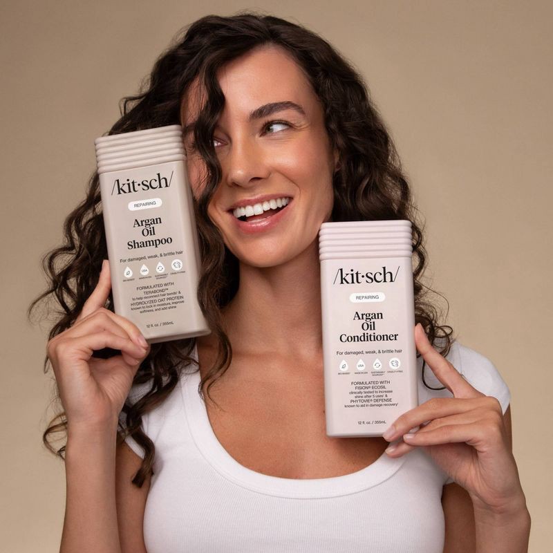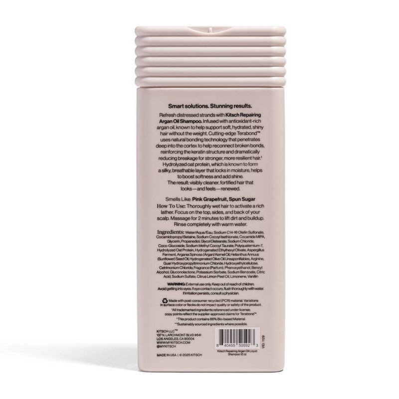 The Kitsch Repairing Argan Oil Shampoo repairs and renews damaged, weak, & brittle hair. Formulated with Terabond™ to help reconnect hair bonds, reinforce keratin structure and reduce breakage,1 and H…