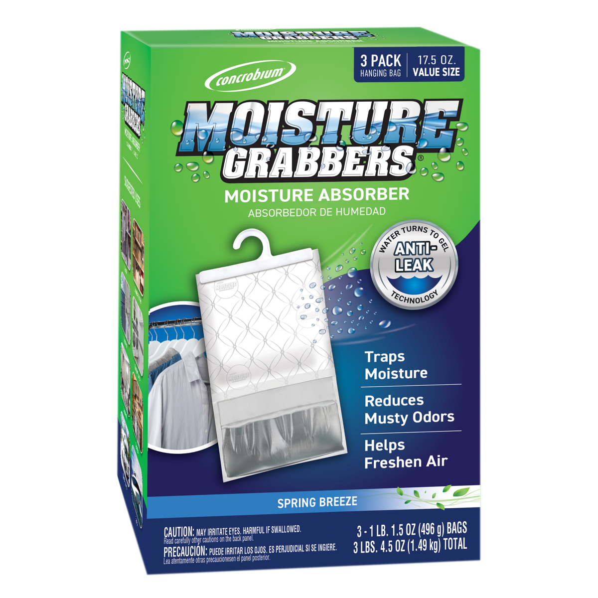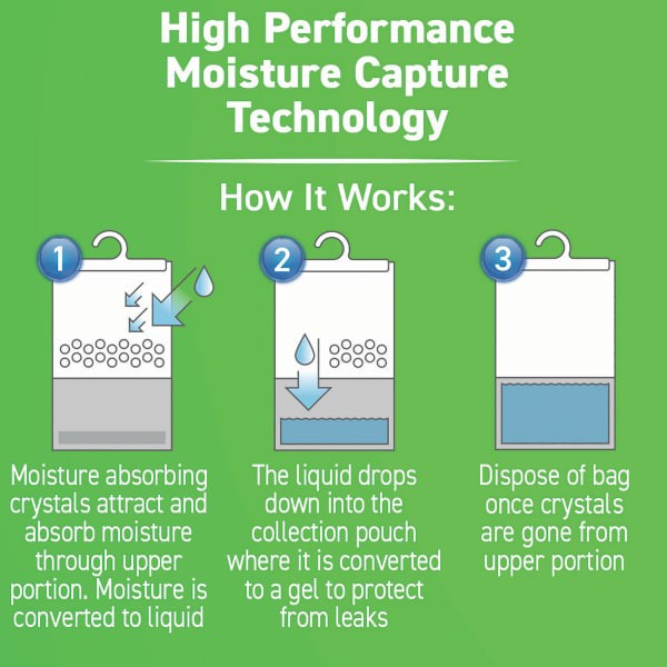 Concrobium Moisture Grabbers eliminate excess moisture for cleaner, fresher air. Excess moisture can cause unpleasant odors, mold and mildew stains and can damage items. Moisture Grabbers absorb and t…