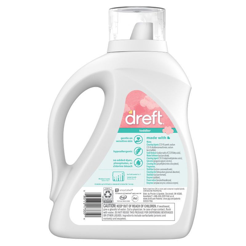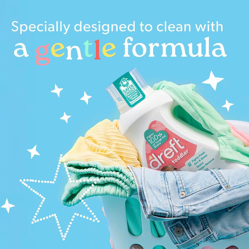 - WHAT'S INCLUDED: Includes one 84 fl oz jug of Dreft Liquid Laundry Detergent for Toddlers, formulated for toddler's special needs, enough for 64 Loads