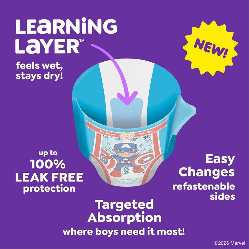 - Pull-Ups feature Captain America graphics that fade when wet so parents know when it's time for a change