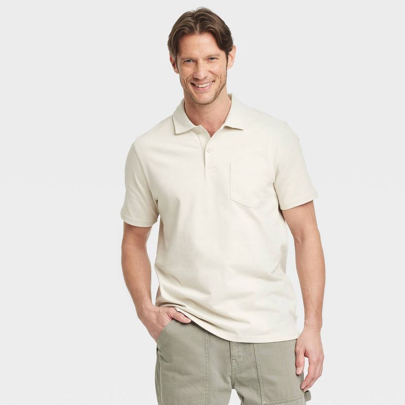 Men's Vintage Polo Shirt - Goodfellow & Co™ Light Beige L: 100% Cotton, Midweight Jersey, Standard Fit, Pullover Style