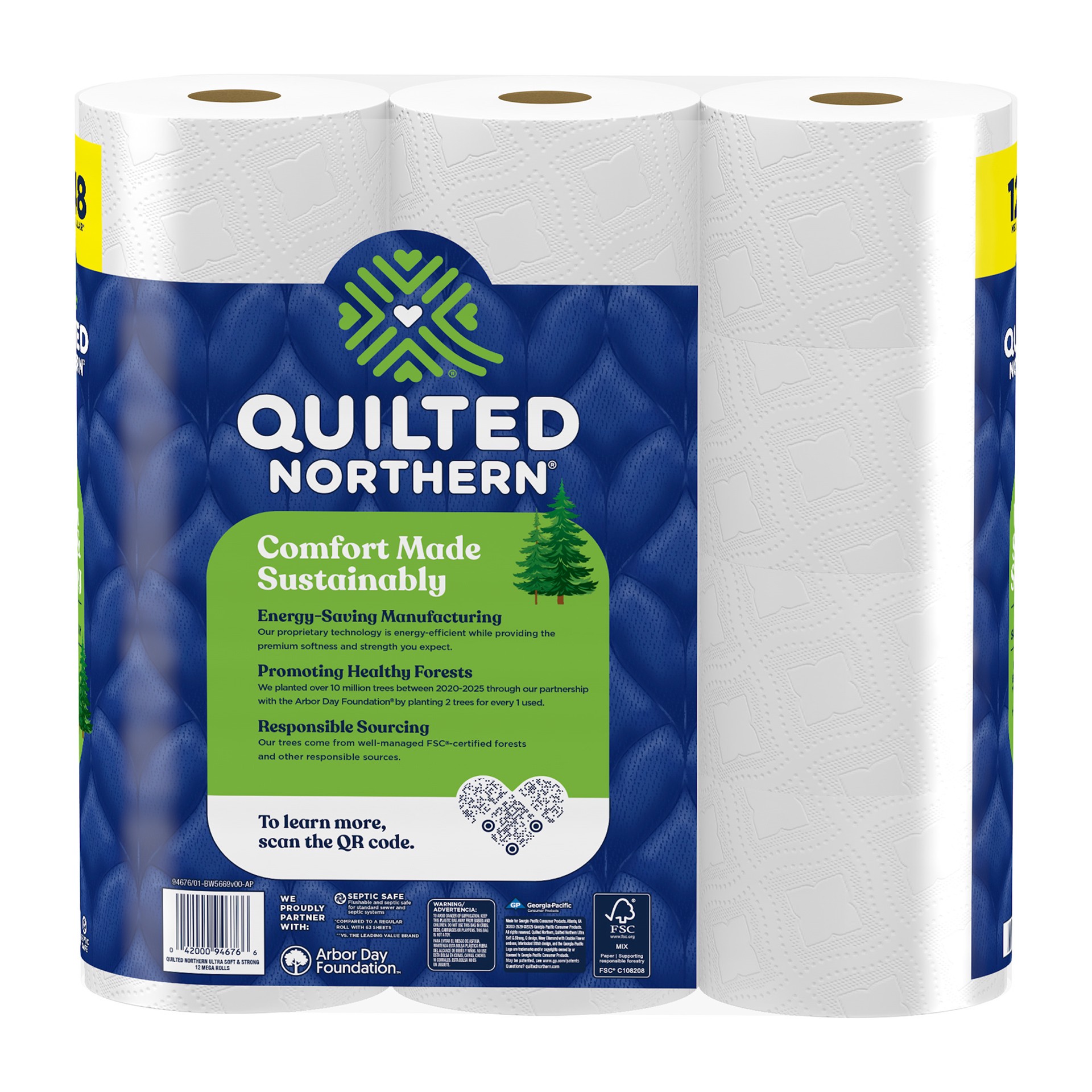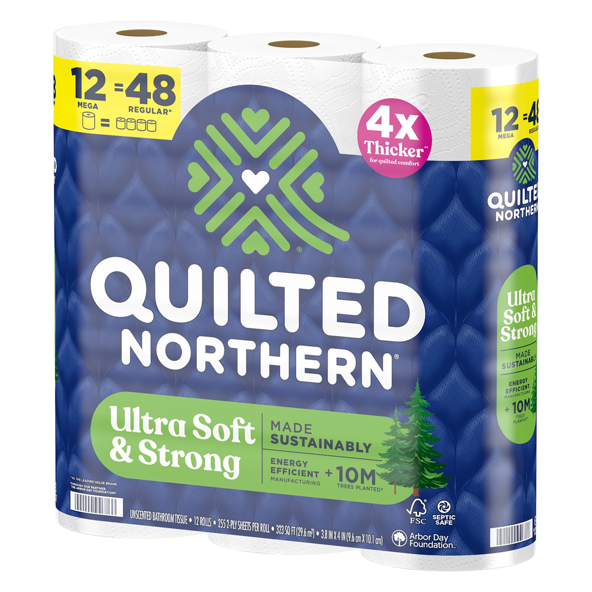 Quilted Northern Ultra Soft & Strong® Toilet Paper is thoughtfully crafted to deliver softness and strength you can count on -- now 4x thicker* for more quilted comfort. Each 2-ply sheet offers the pe…