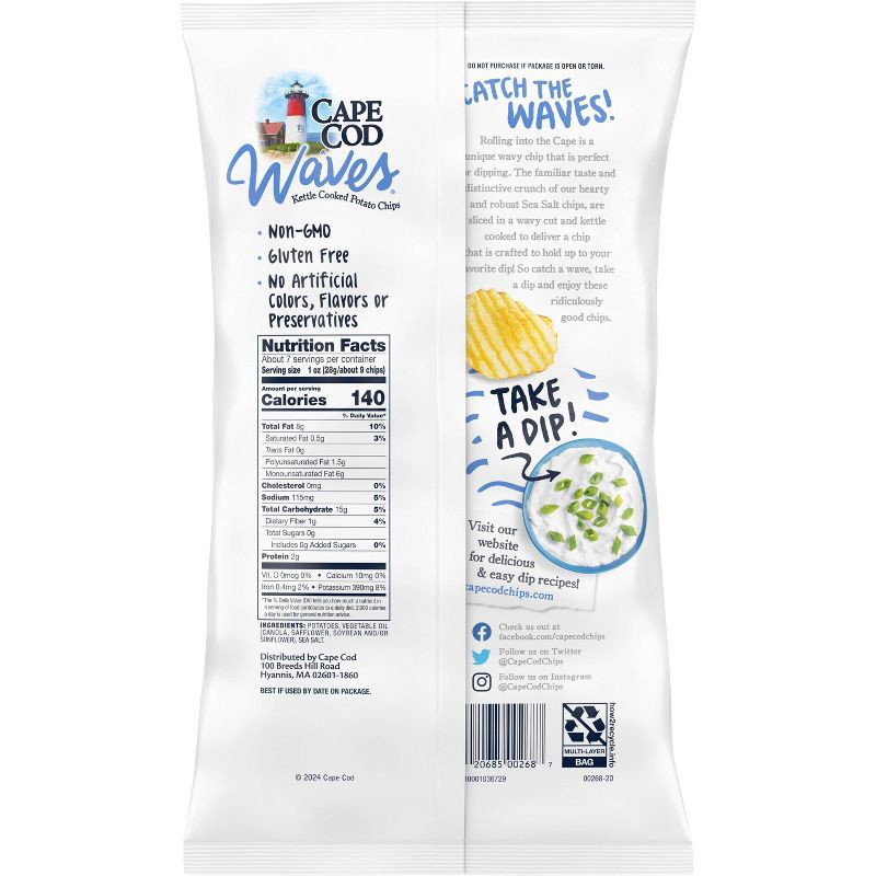 - Includes one (1) 7.5-ounce bag of Cape Cod Waves Sea Salt chips