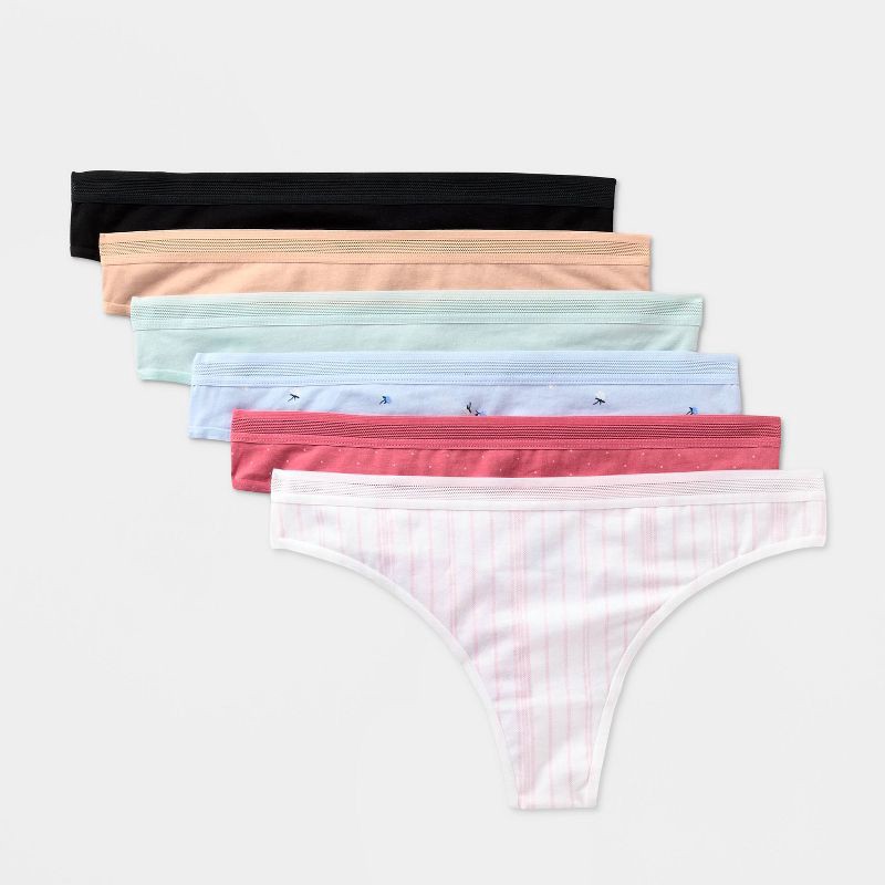 Dress up for the day in cool comfort with the 6-Pack Cotton Thong Underwear from Auden™. The low-rise thong underwear is made from cotton-spandex blend knit fabric with cotton lining and a gusset to o…