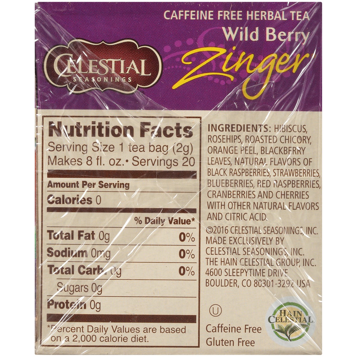 Celestial Seasonings Herbal Tea Caffeine Free Wild Berry Zinger- 20 ct