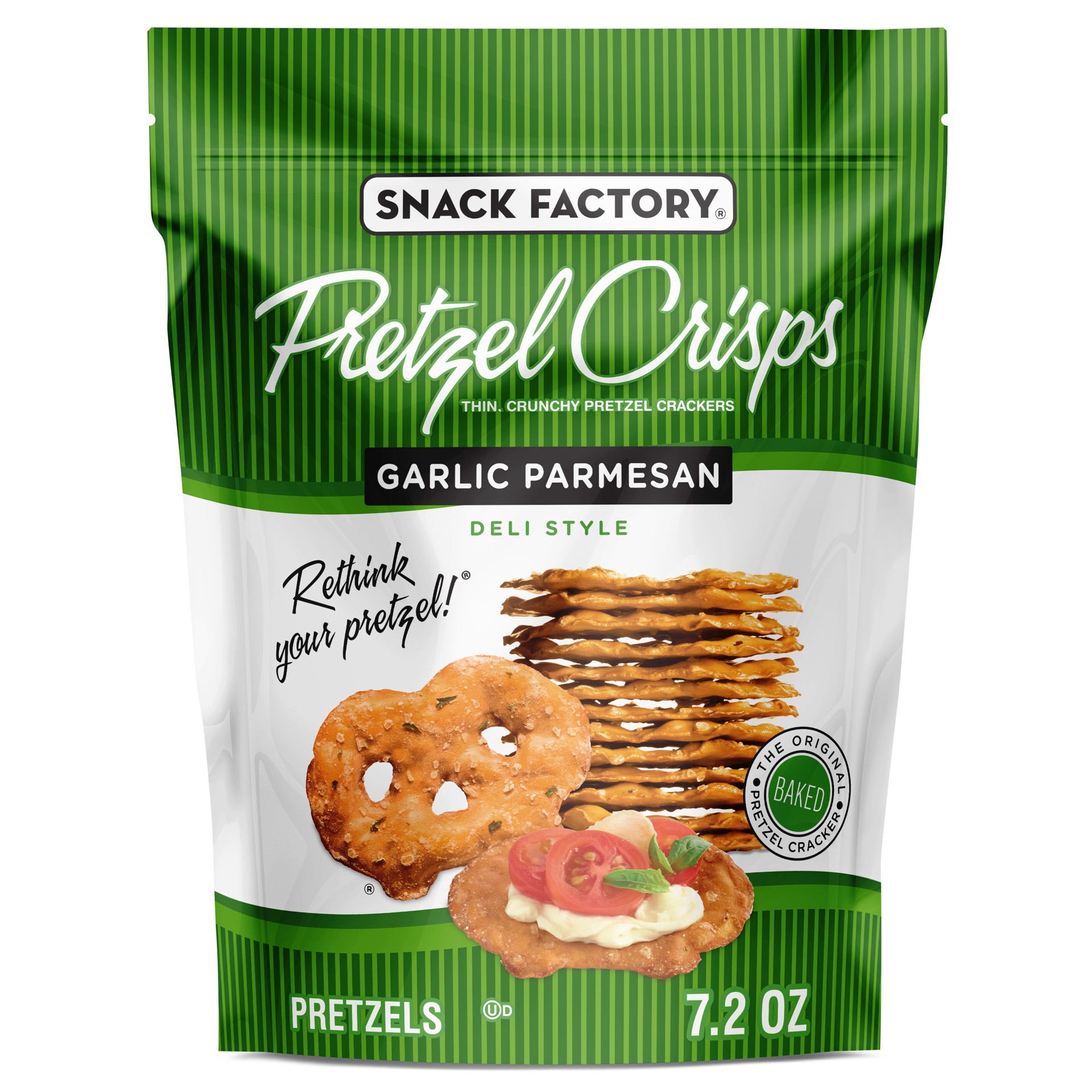 - GARLIC PARMESAN PRETZEL CHIPS: Snack Factory Garlic Parmesan Pretzel Crisps are all fancied up with savory garlic and zingy Parmesan